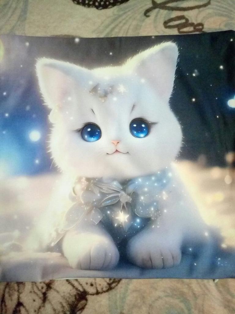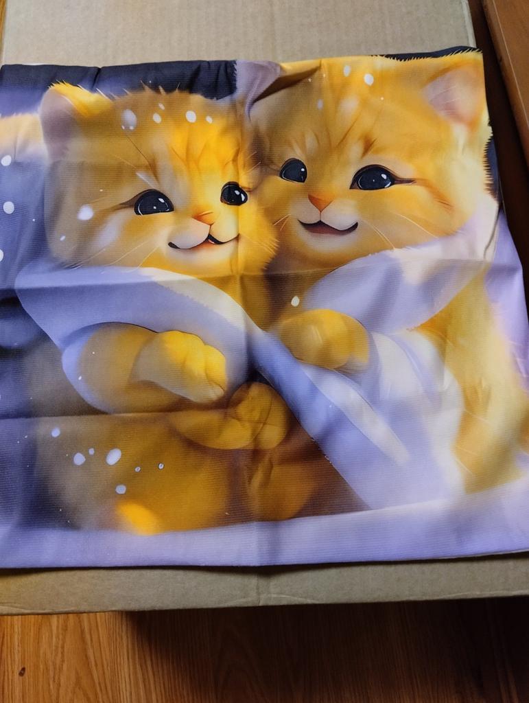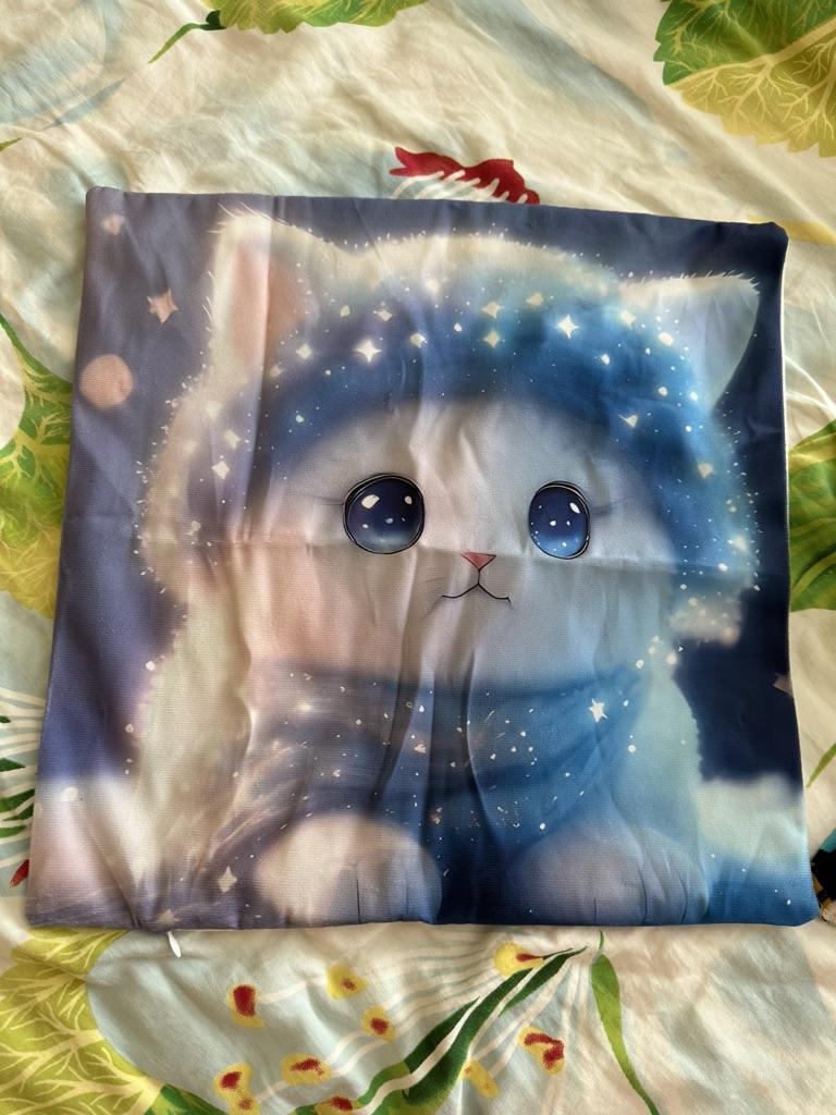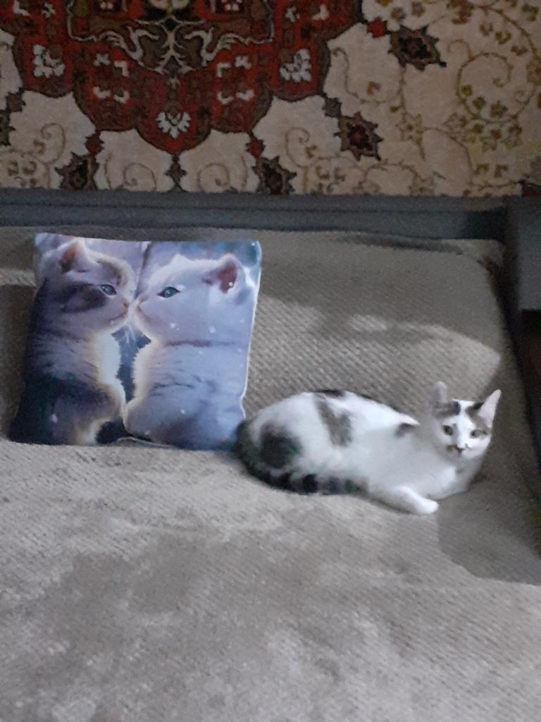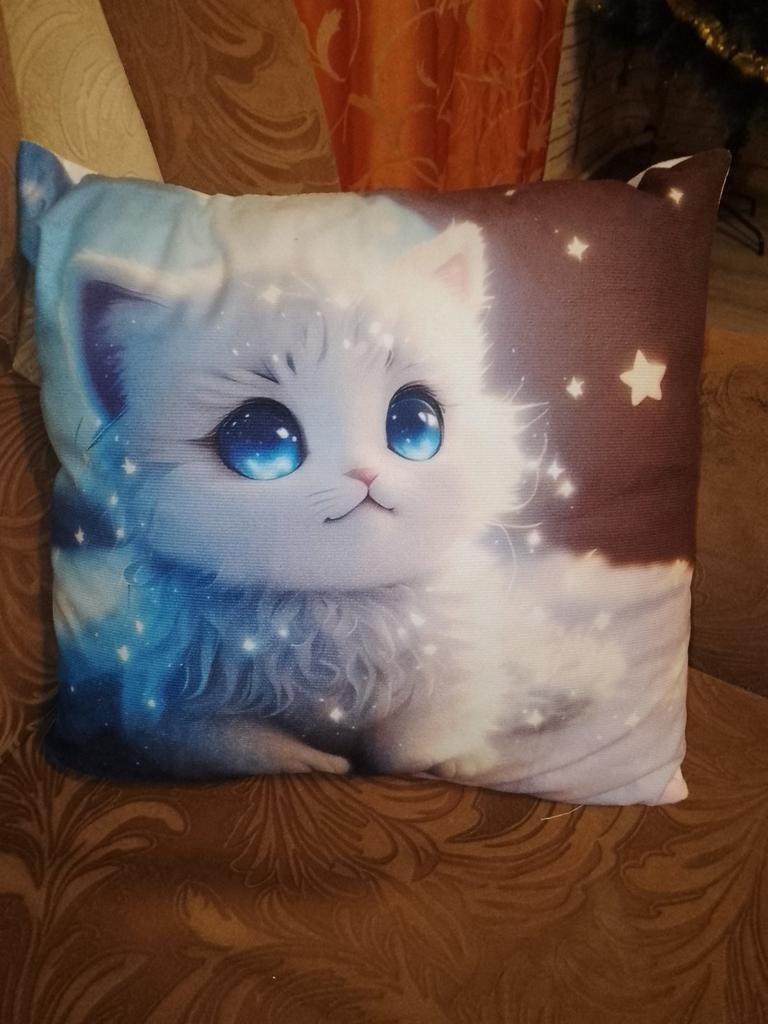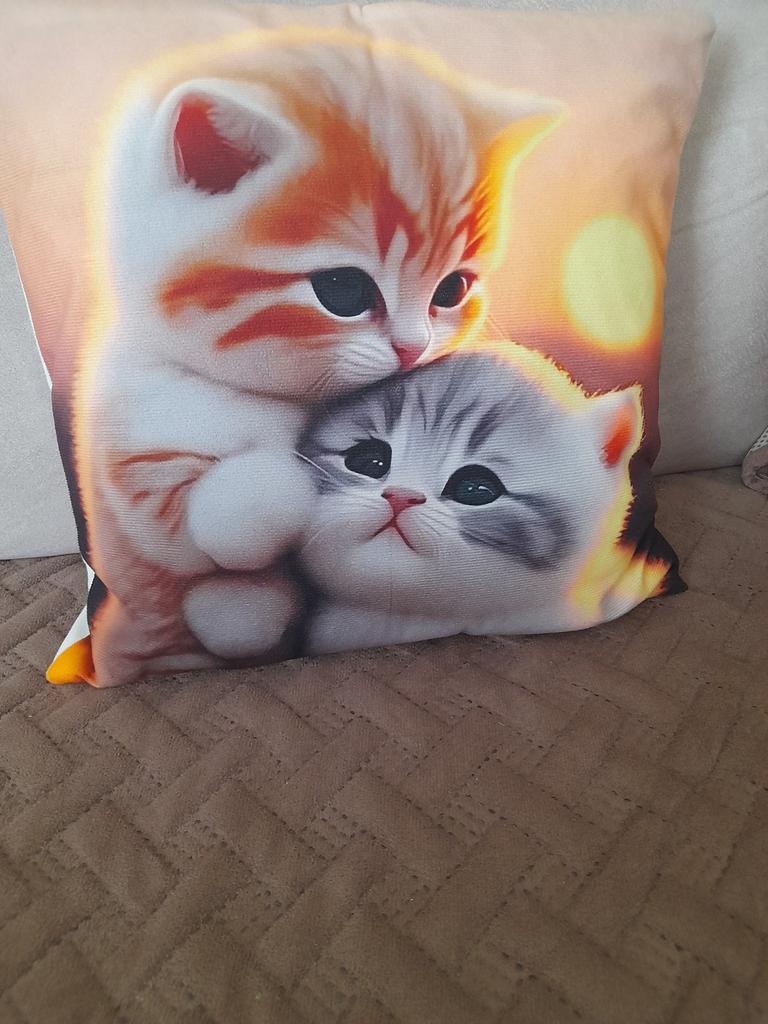 The cushions are wonderful, cute, you look at them and want to smile. The kitten with its eyes lifts the mood.
