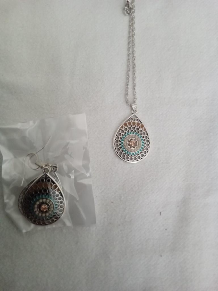 The set is beautiful, but the chain is too short for me. I ordered a long one. I also took a bracelet in the same style to go with the set.