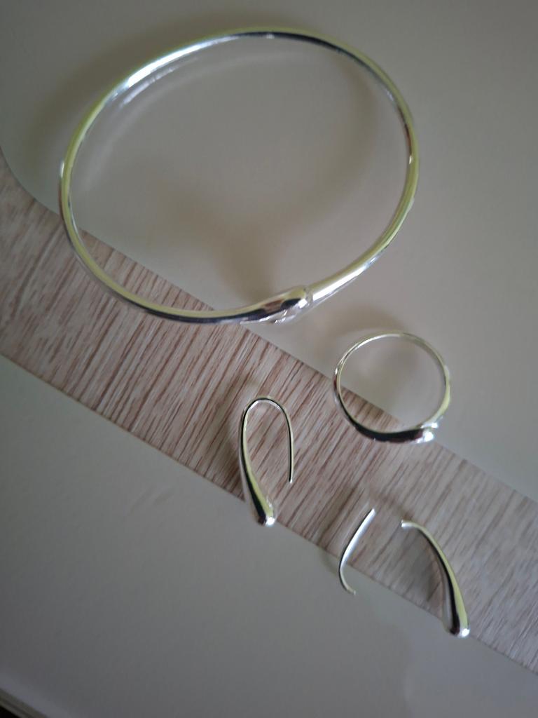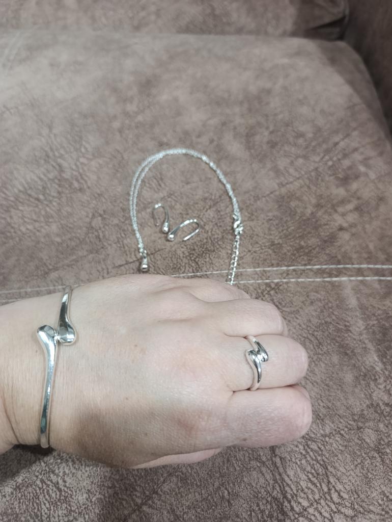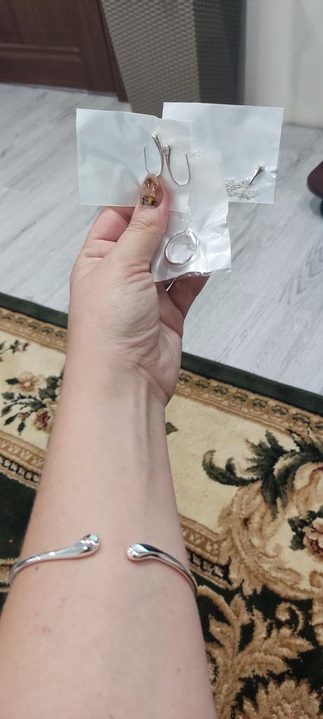 Beautiful set, everything would be good if one earring hadn't arrived broken (but here thank you, they returned 20% of the cost), but the second earring also broke when trying to put it on, the metal doesn't bend at all, and it's not clear how to put it on then, the gap is too narrow. The bracelet is for a very narrow hand.