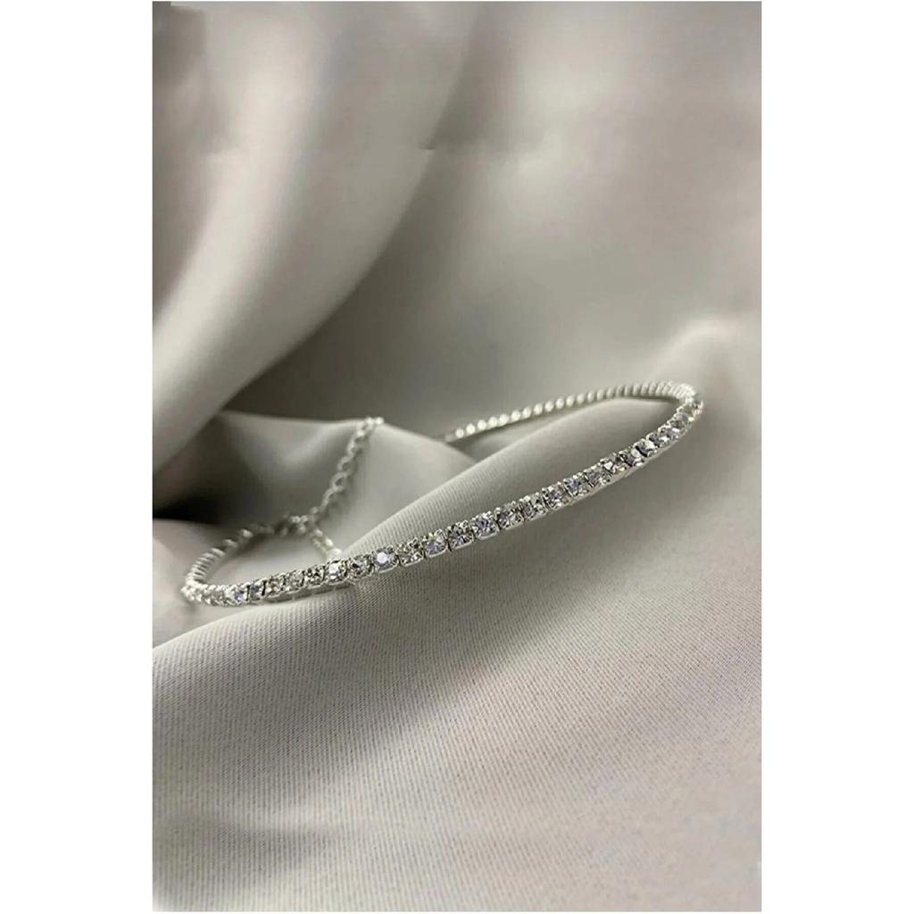 Women's Rhinestone Choker Silver Necklace