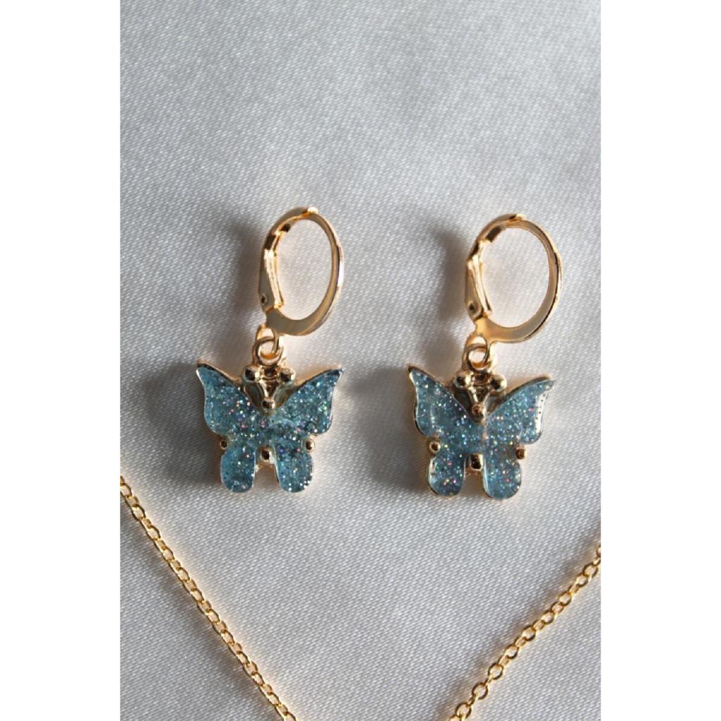 Women's Aqua Green Sparkling Butterfly Necklace And Earrings