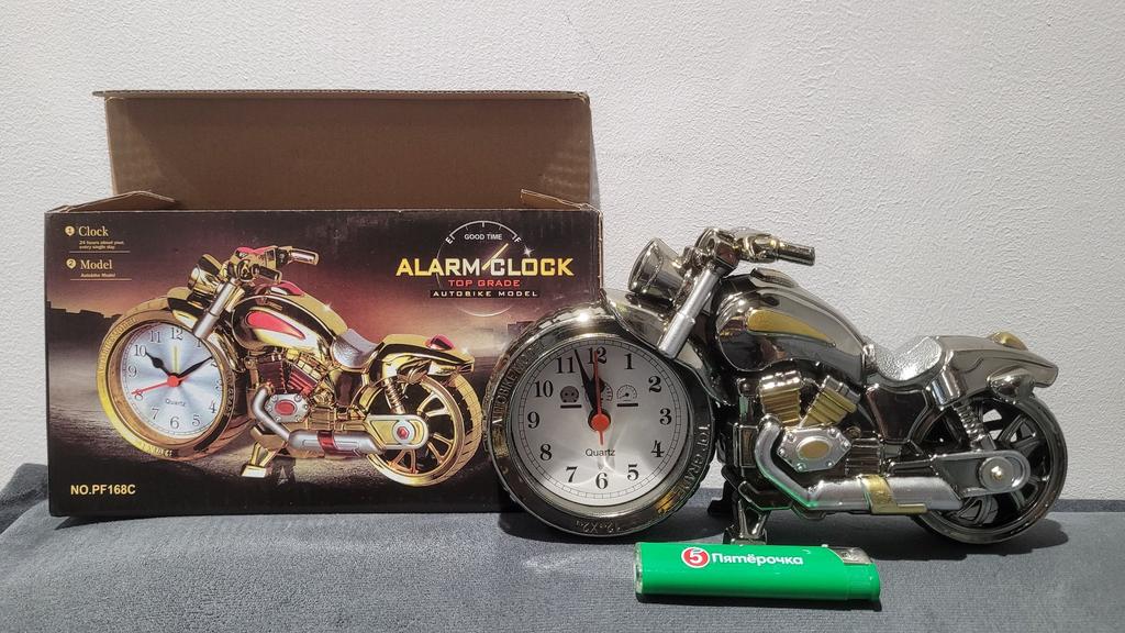 Beautiful watch in the shape of a motorcycle! ✈️ The parcel went about a month to Moldova, Chisinau. ✔️There is a branded box. ✔️The design is very cute. ✔️Working and without damage. ✔️The battery is not included in the set. ✔️There is an alarm clock. 💖I recommend for purchase!
