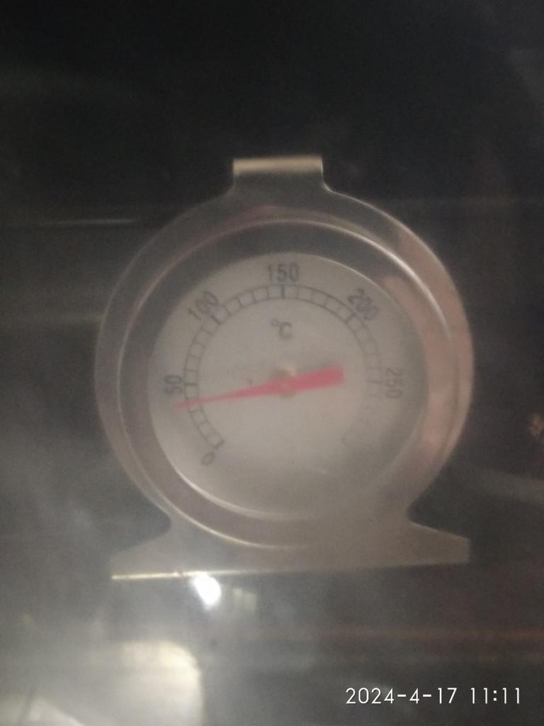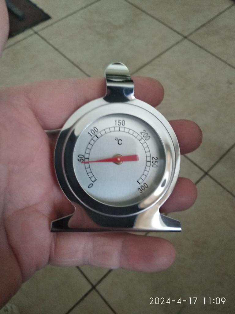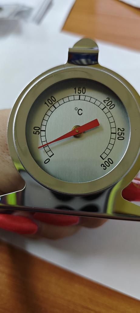 Well, finally I have a thermometer in my oven). I'm very happy. It can be hung by the loop, or placed on the stand, whichever is more convenient for someone. When the gas is fully on, the oven shows 250. Well, maybe it is so. I don't know. I will check-experiment.