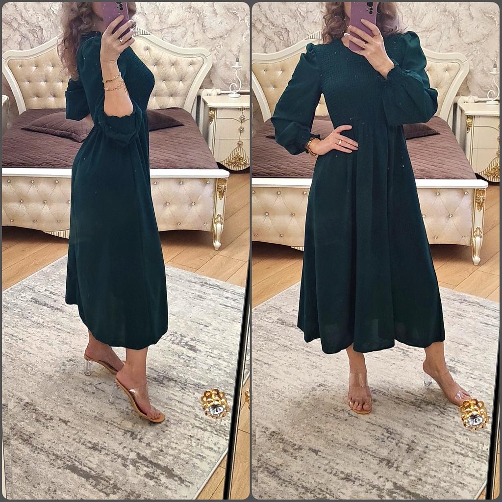 Elegantes Maxikleid๐๐! Delivery time ๐: 21 days to Germany. โป๏ธScope of delivery: Included in delivery is a maxi dress ๐ in the appropriate size. The product is only available in this color: dark green. It is available in sizes from S to XL. I ordered the product in size M and the dress ๐ fits me great and the color is exactly as shown. ๐ค๐ค๐ค๐ I normally wear dress size 36 (S). I weigh 55kg and am 167cm tall. I think an SM's dress fits easily ๐๐๐ฅ๐ฃ. ๐Quality โป๏ธ: The dress is light and swings beautifully. Very pleasant on the skin. The top has an O-neck and belt, with elastic at the waist. You can use the dress ๐ for a party or daily use. โ ๏ธMaterial composition: polyester. But the material is very comfortable on the skin. I think the DRESS ๐ is simply mega๐๐๐๐๐ โณ๏ธSummary โณ๏ธ: A beautiful casual long sleeve dress ๐ that you can order in your normal size. I am very happy to recommend the product.,5 stars. ๐! Thank you Joom and the seller for this beauty๐ค๐ค๐ค๐๐