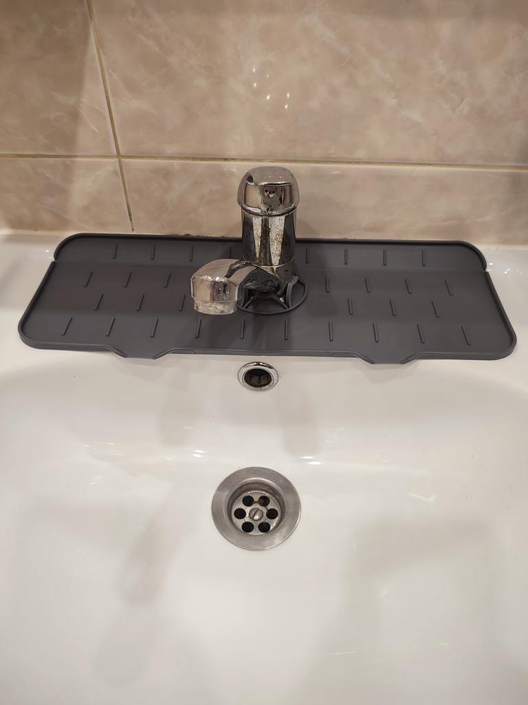 1pc Kitchen Faucet Sink Splash Guard, Silicone Faucet Water Catcher Mat, Sink Draining Pad Behind Faucet, Grey Rubber Drying Mat