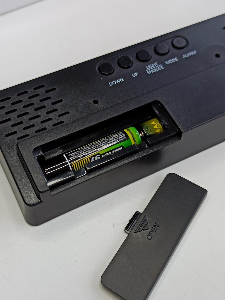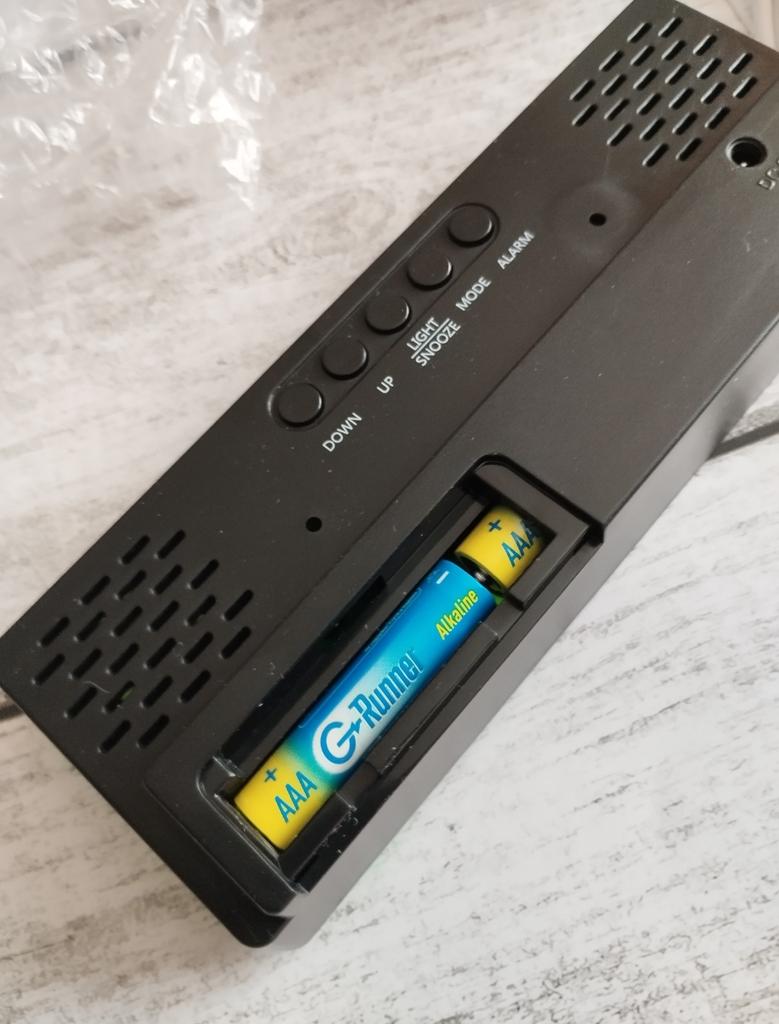 Ordered items on 30.11, received on 24.01. Batteries are not included, I put in three AAA batteries, set them up, the clock works, but it seems to show the time only when connected to the mains, and goes into sleep mode on batteries (saving power?)
