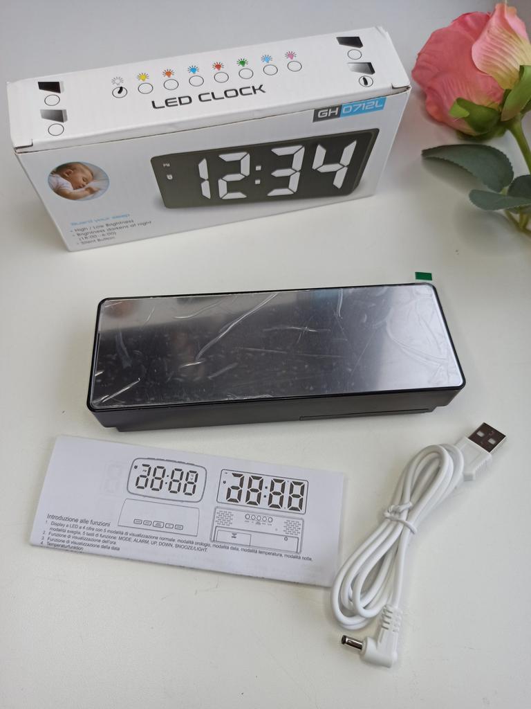 Mirror Alarm Clock LED Digital Clock Night Light Table Clock USB Charging