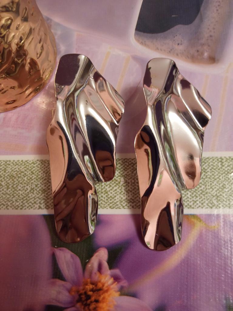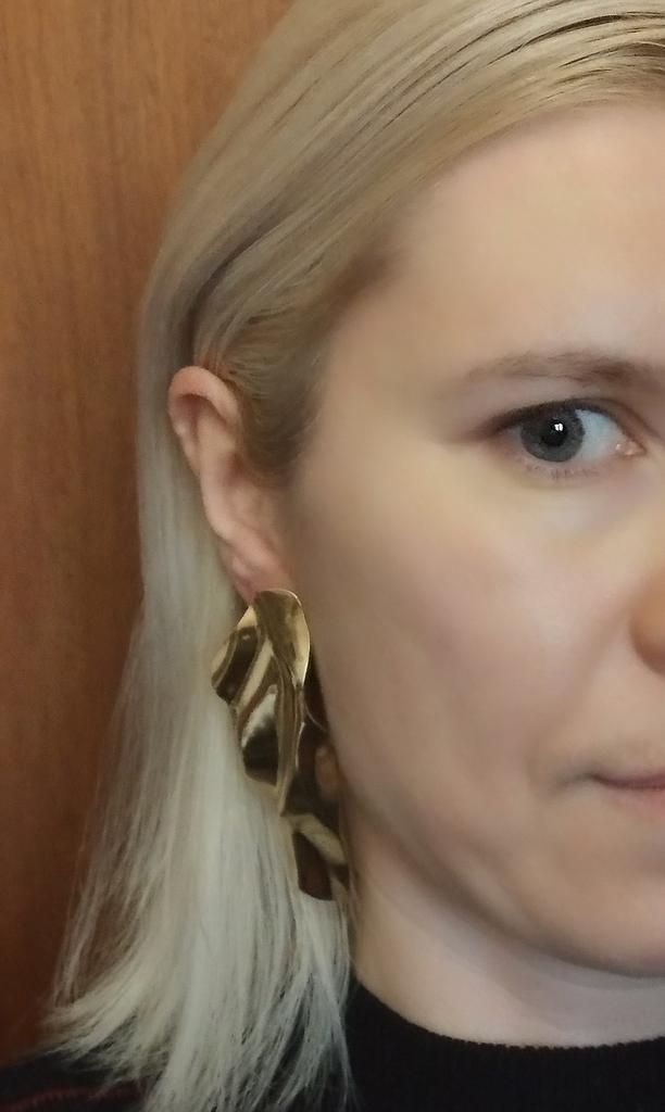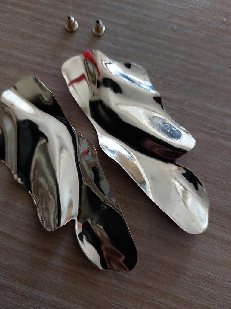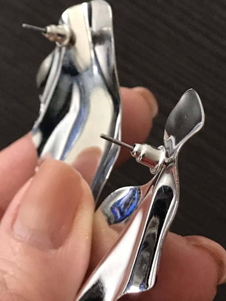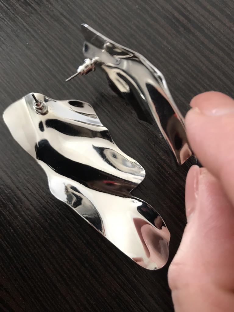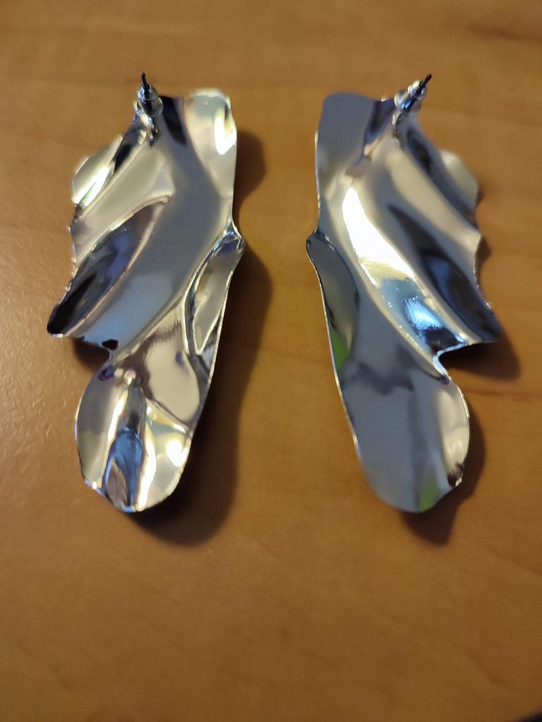 One earring is matte and the other is shiny.
