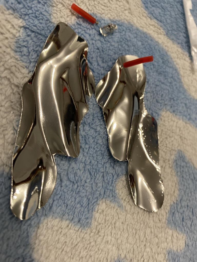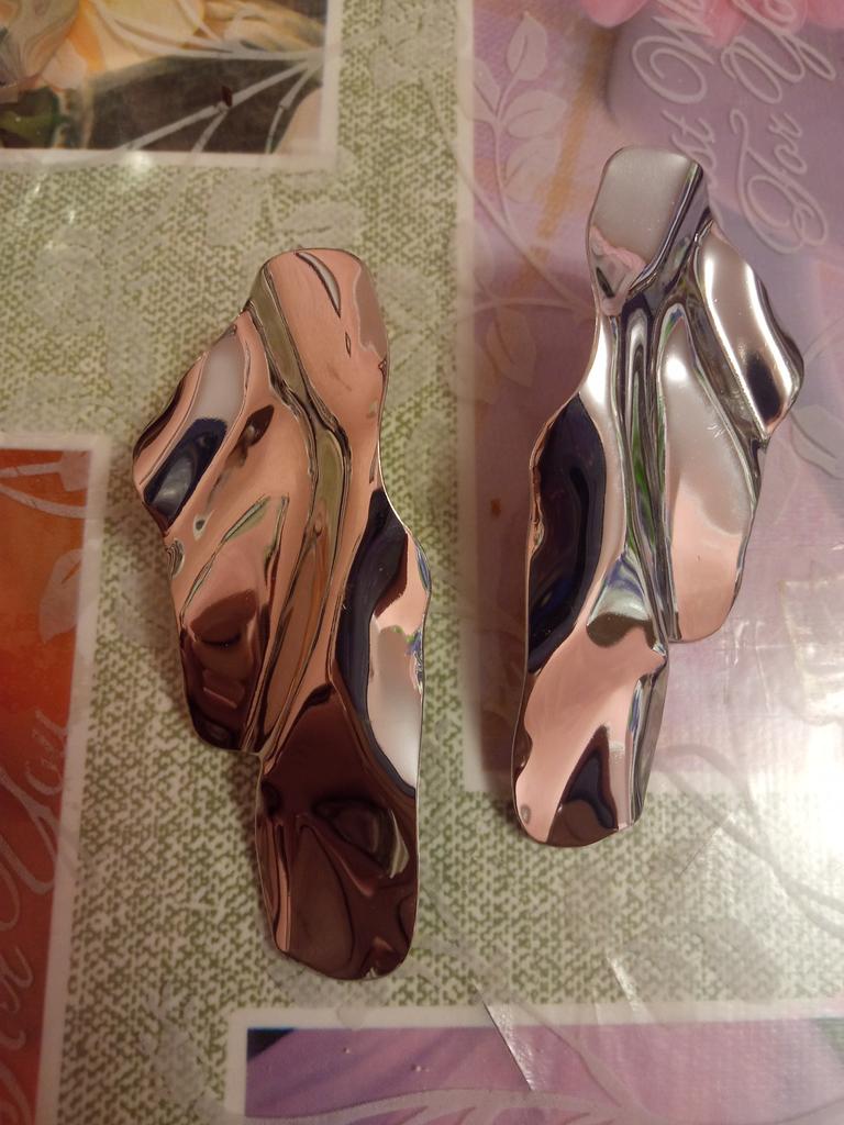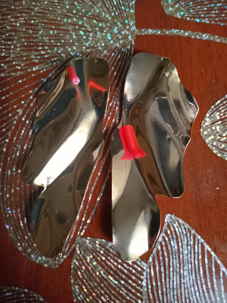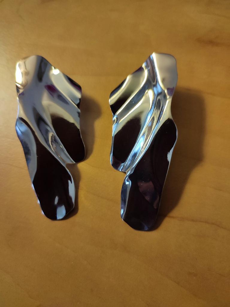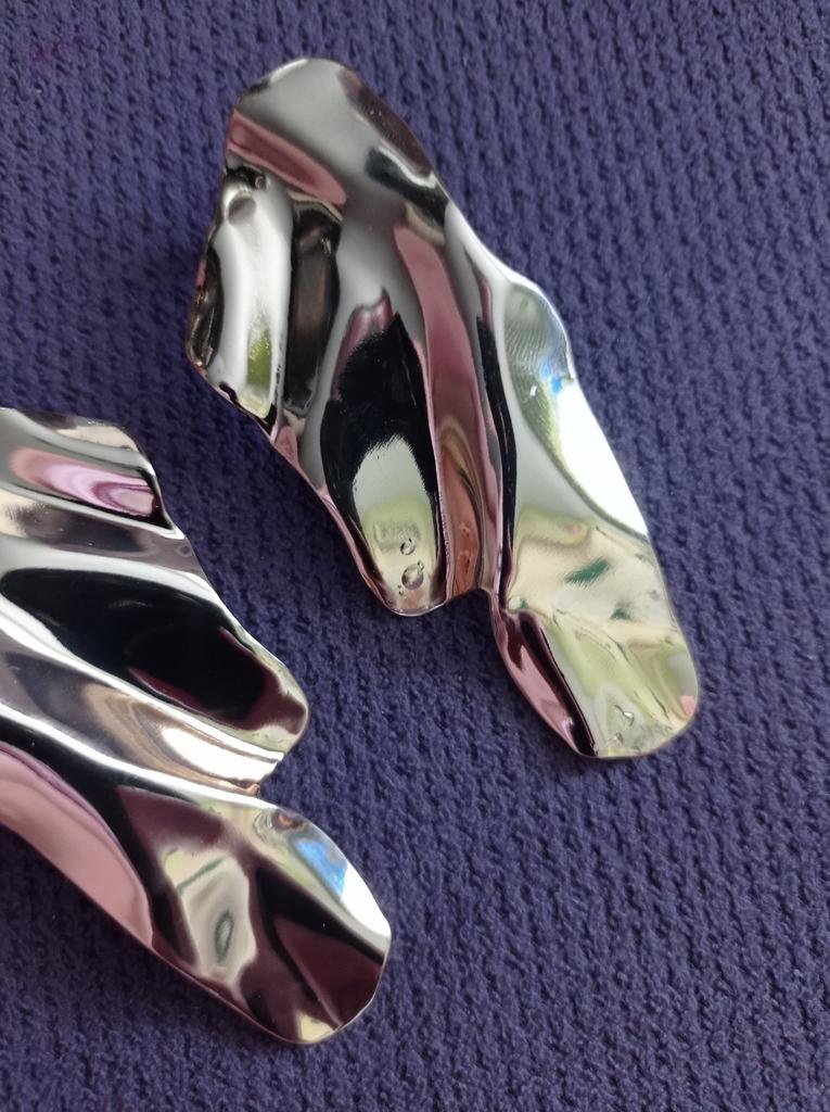 One earring is matte and the other is shiny.