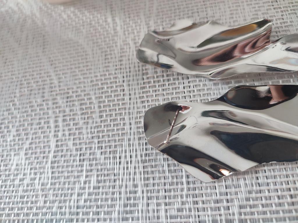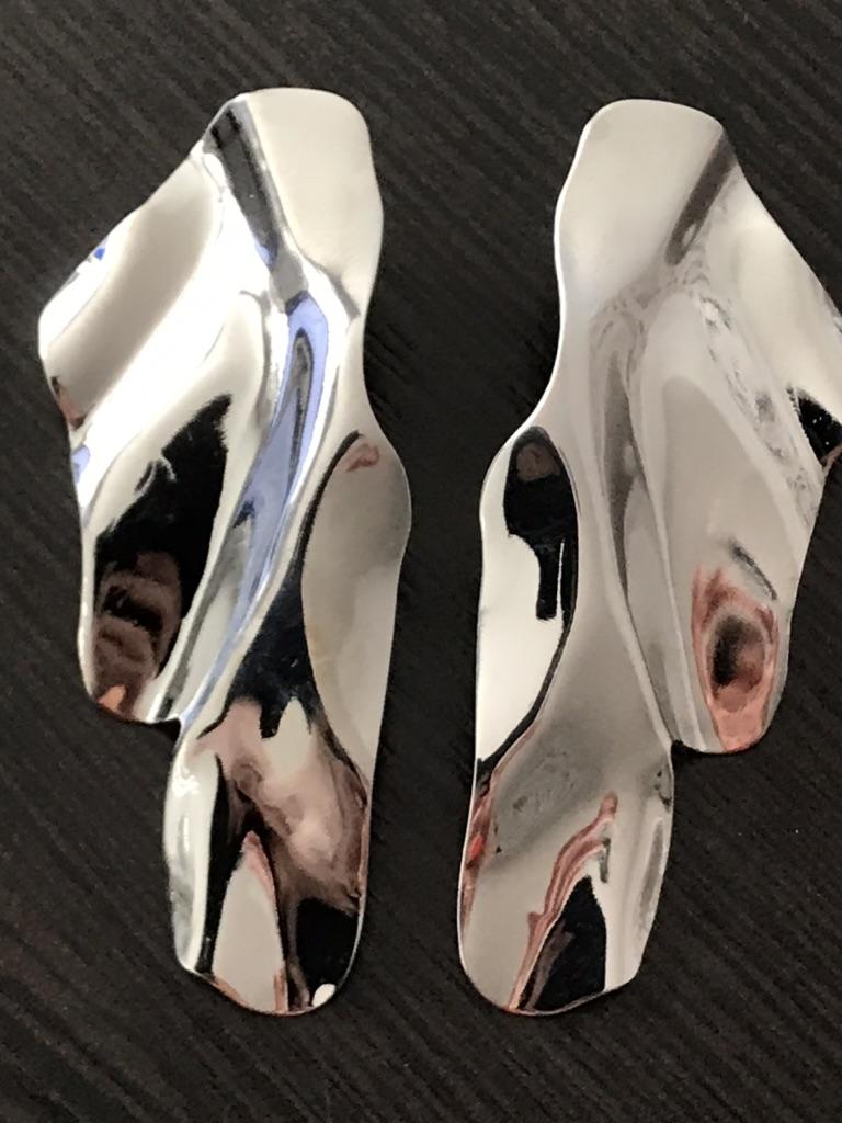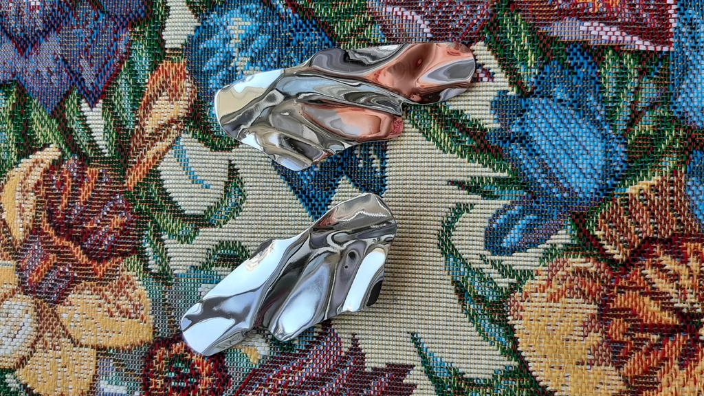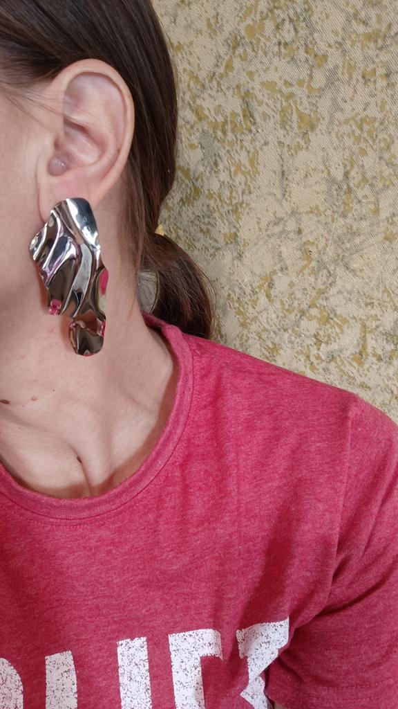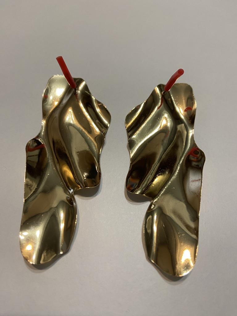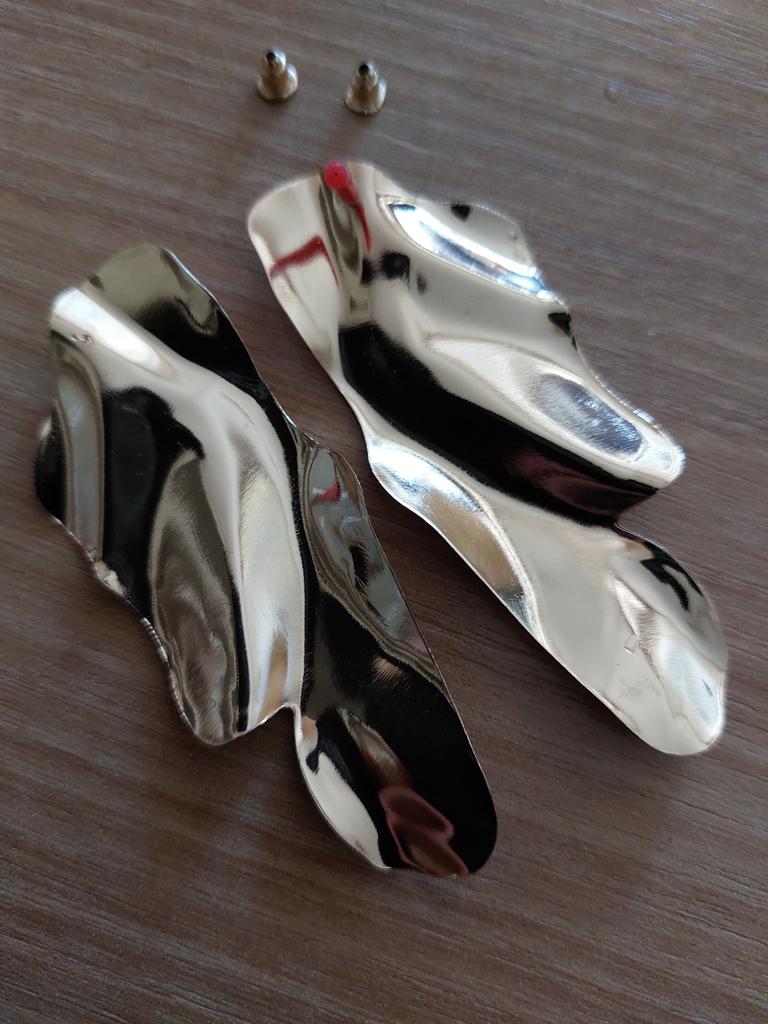 One earring is matte and the other is shiny.
