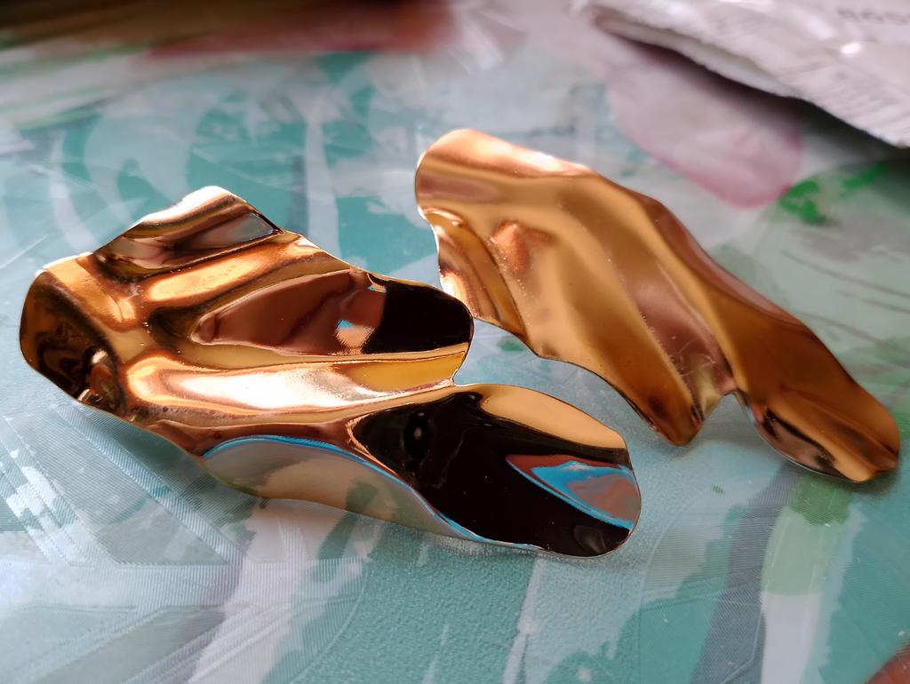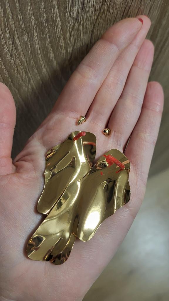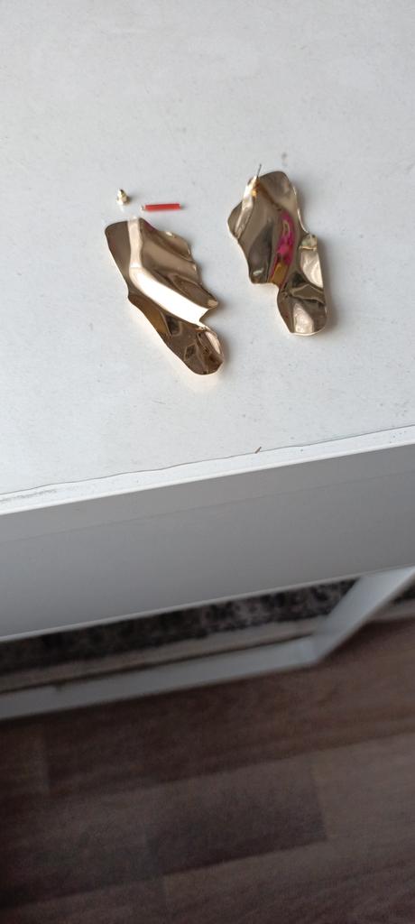 In the photos on Joom they look like they have enamel!?-they sparkle!-but in reality I'm shocked!-I definitely won't wear them!-might as well throw them away!-a piece of bent yellow iron-alloy. I would like to get my money back.
