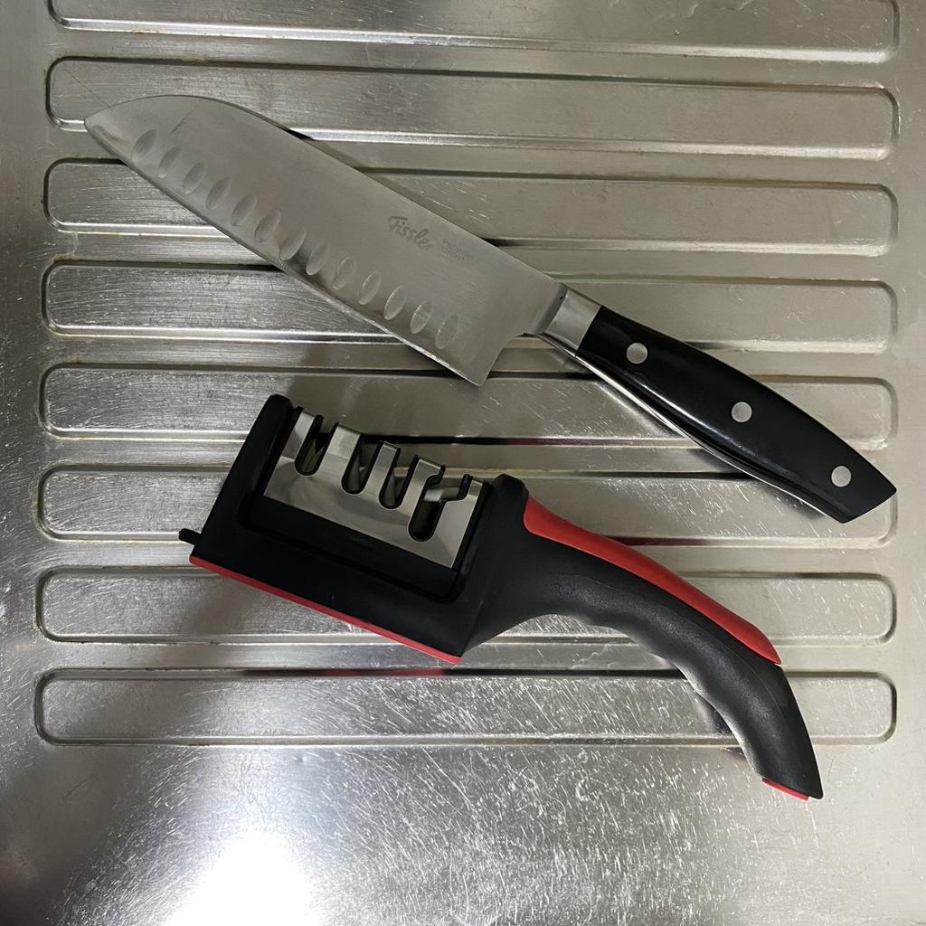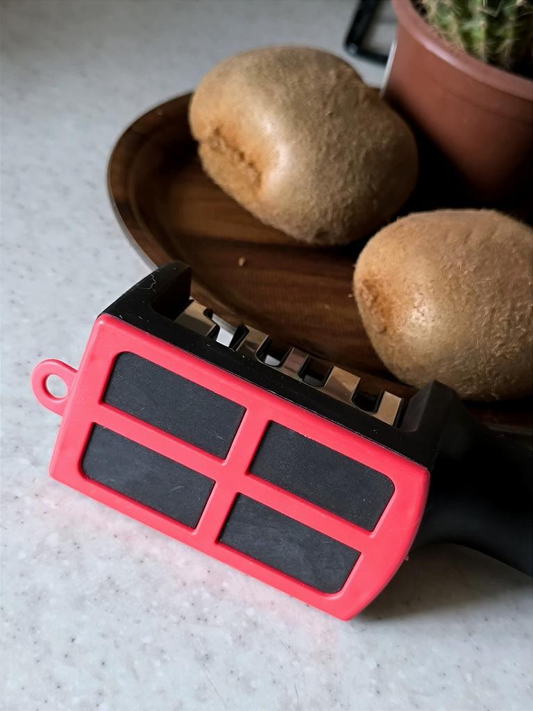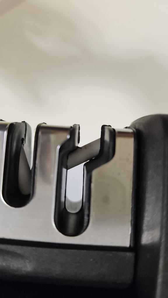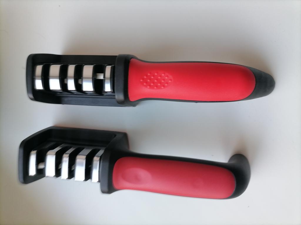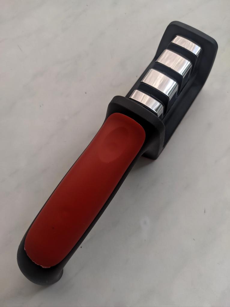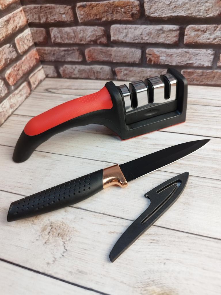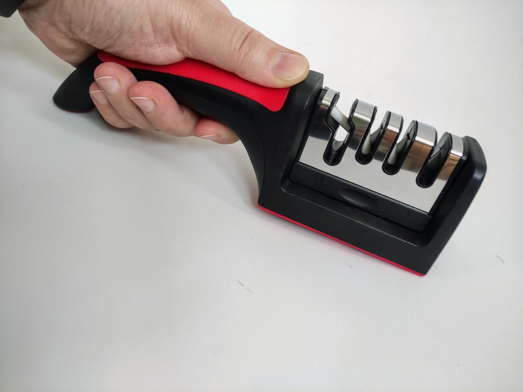 The knife definitely became sharper after sharpening, not so much, but better than it was 💯. Sharpening is easy. Comfortable handle, will be a good helper in the kitchen. Visually, the plastic is a little worn, but it does not affect sharpening. It just spoils the aesthetic look a little. It's okay, I'll use it.