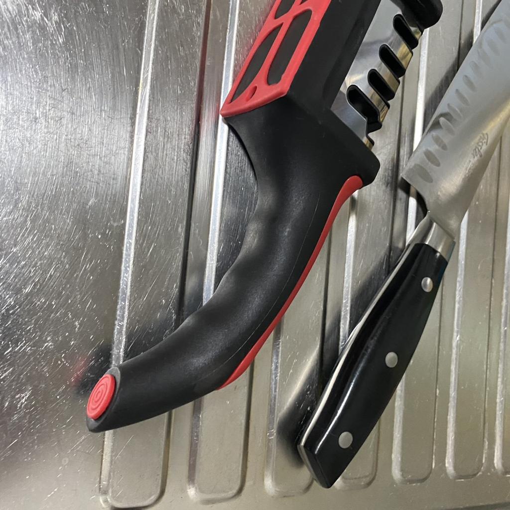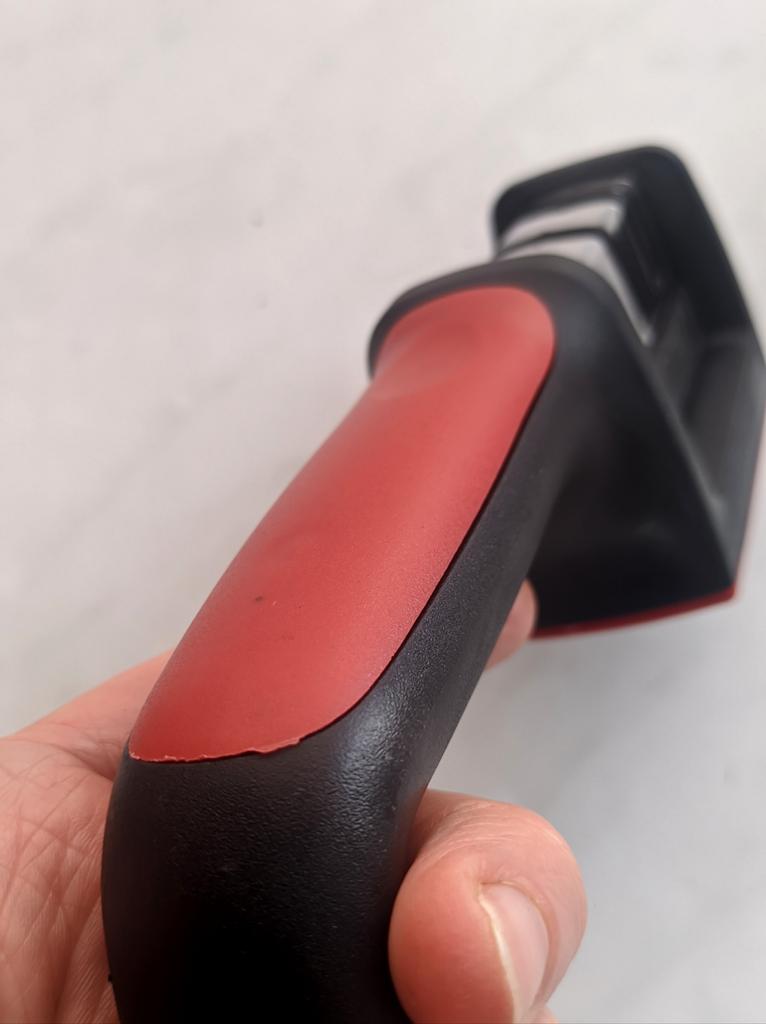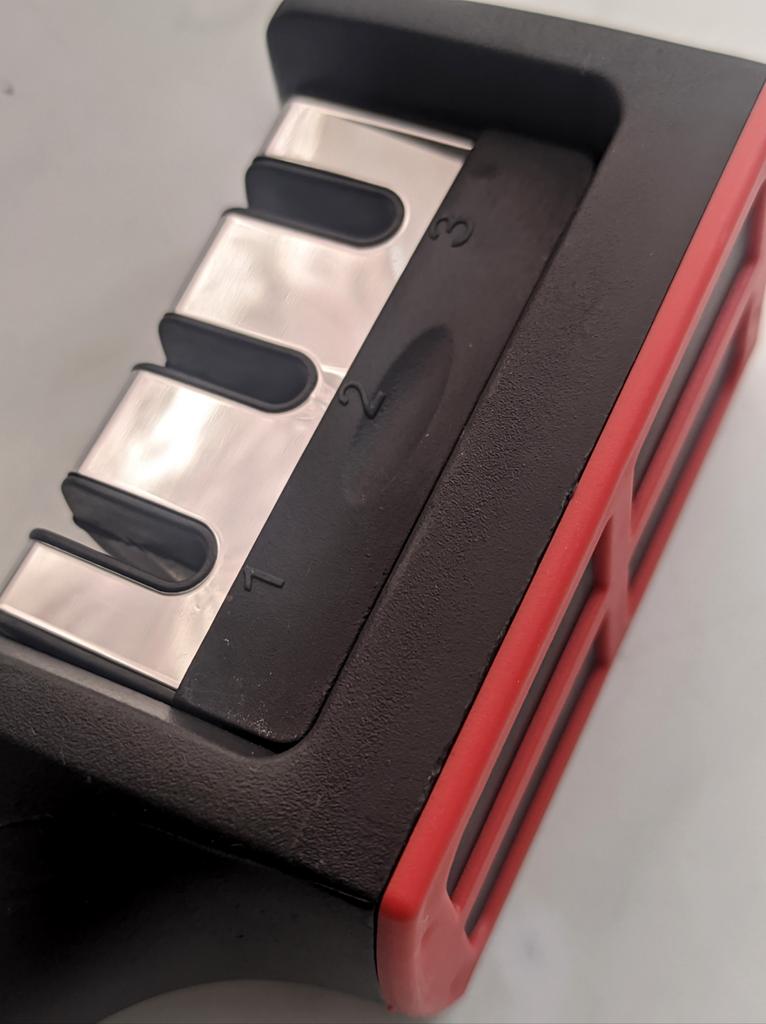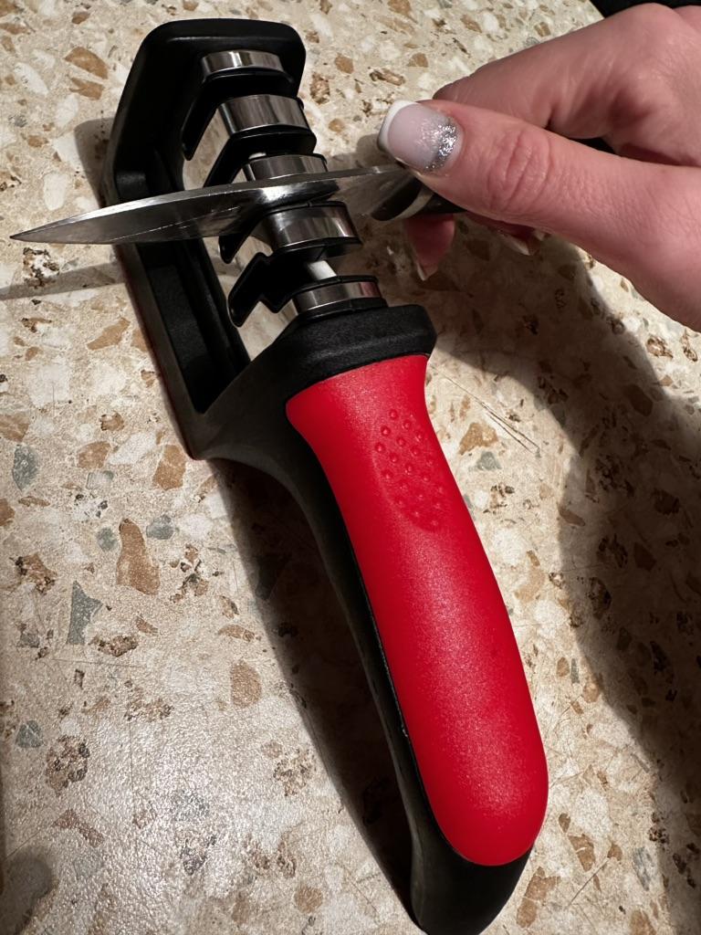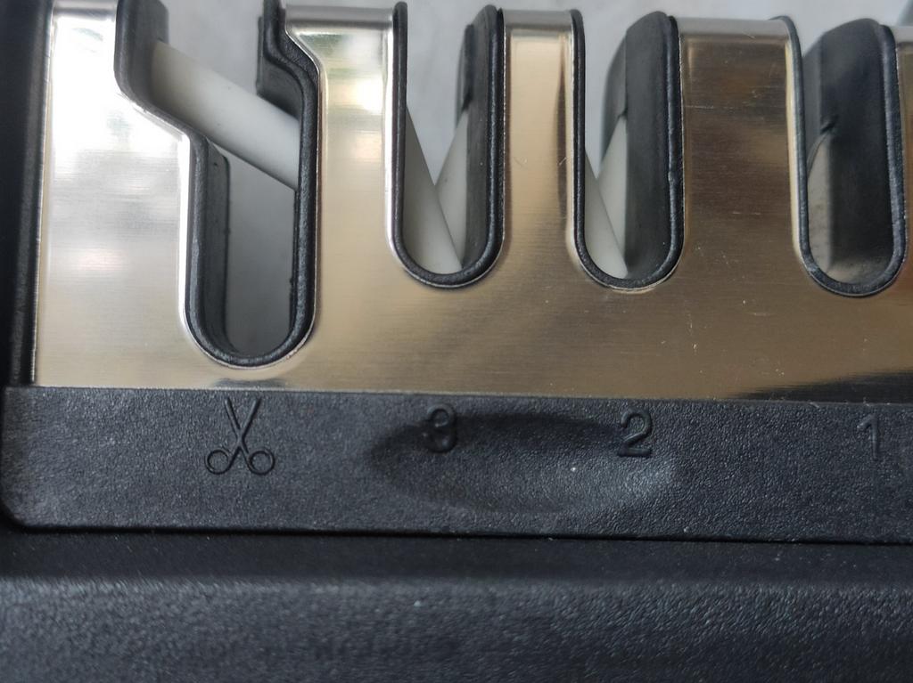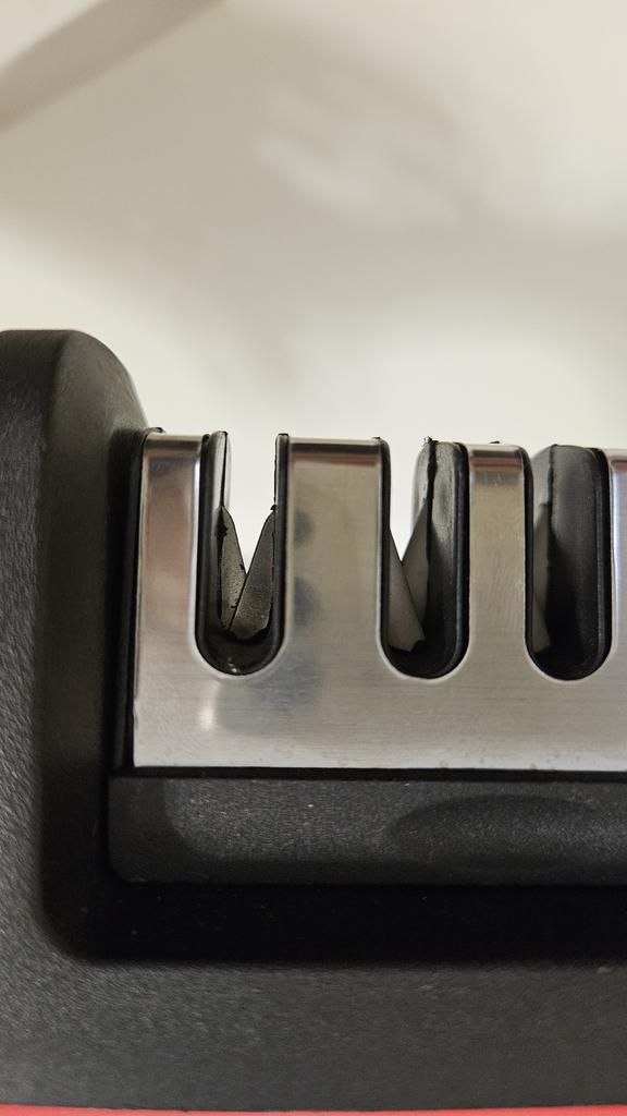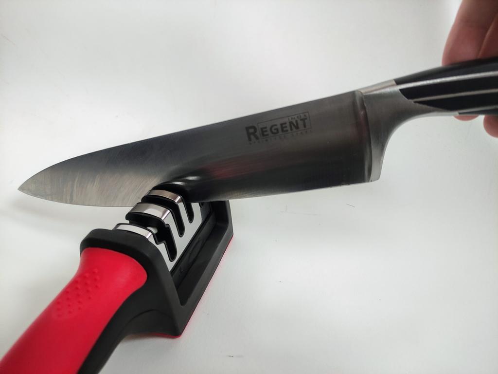 The knife definitely became sharper after sharpening, not so much, but better than it was 💯. Sharpening is easy. Comfortable handle, will be a good helper in the kitchen. Visually, the plastic is a little worn, but it does not affect sharpening. It just spoils the aesthetic look a little. It's okay, I'll use it.