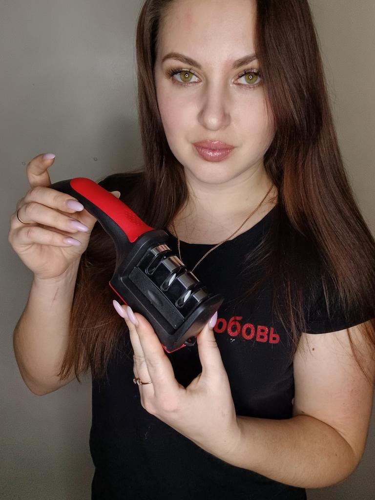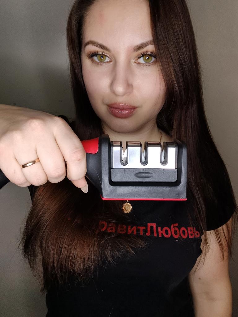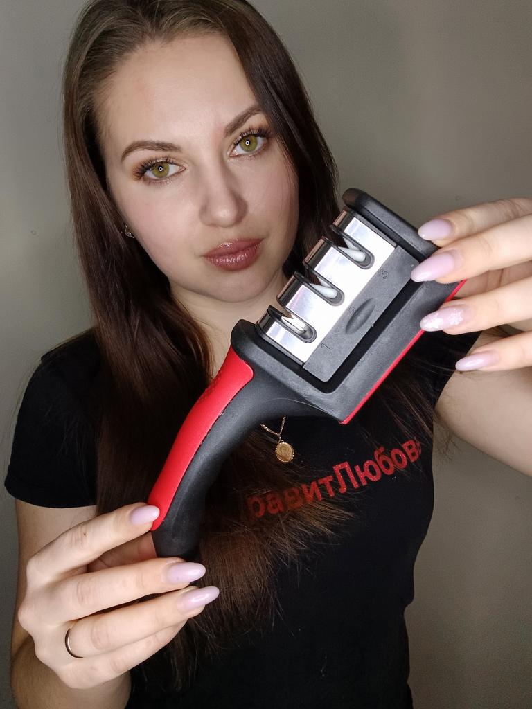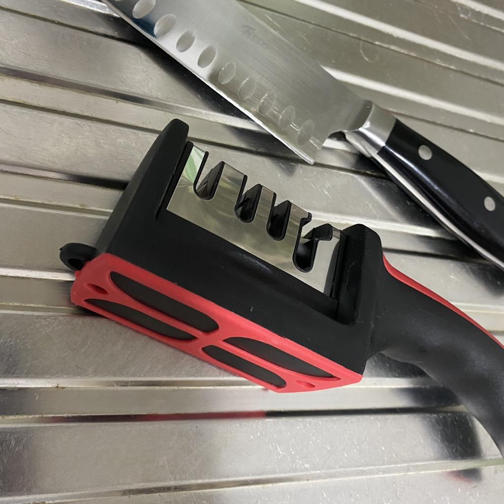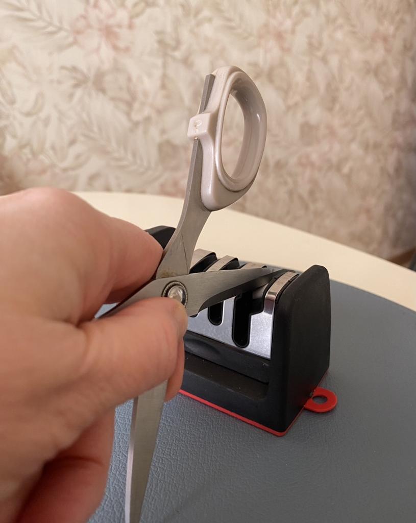Sharpener for knives and kitchen scissors ! ✈️ The parcel took less than a month to Moldova. ✅Material: plastic body, metal . ✅ 3 reps. for sharpening knives and 1 hole. for sharpening scissors ✅Comfortable handle and silicone bottom to prevent the sharpener from slipping. ✅Excellent quality! ✅I’m happy with the purchase and definitely recommend it for purchase ❤️