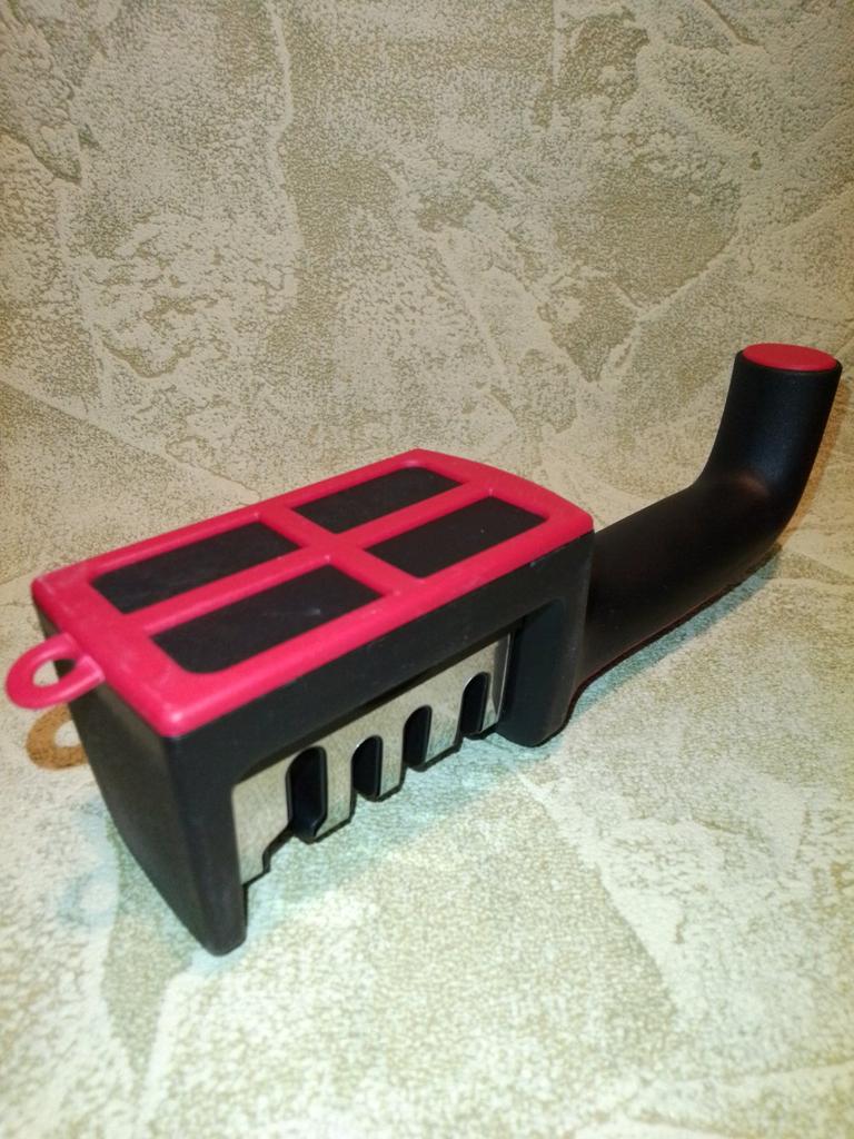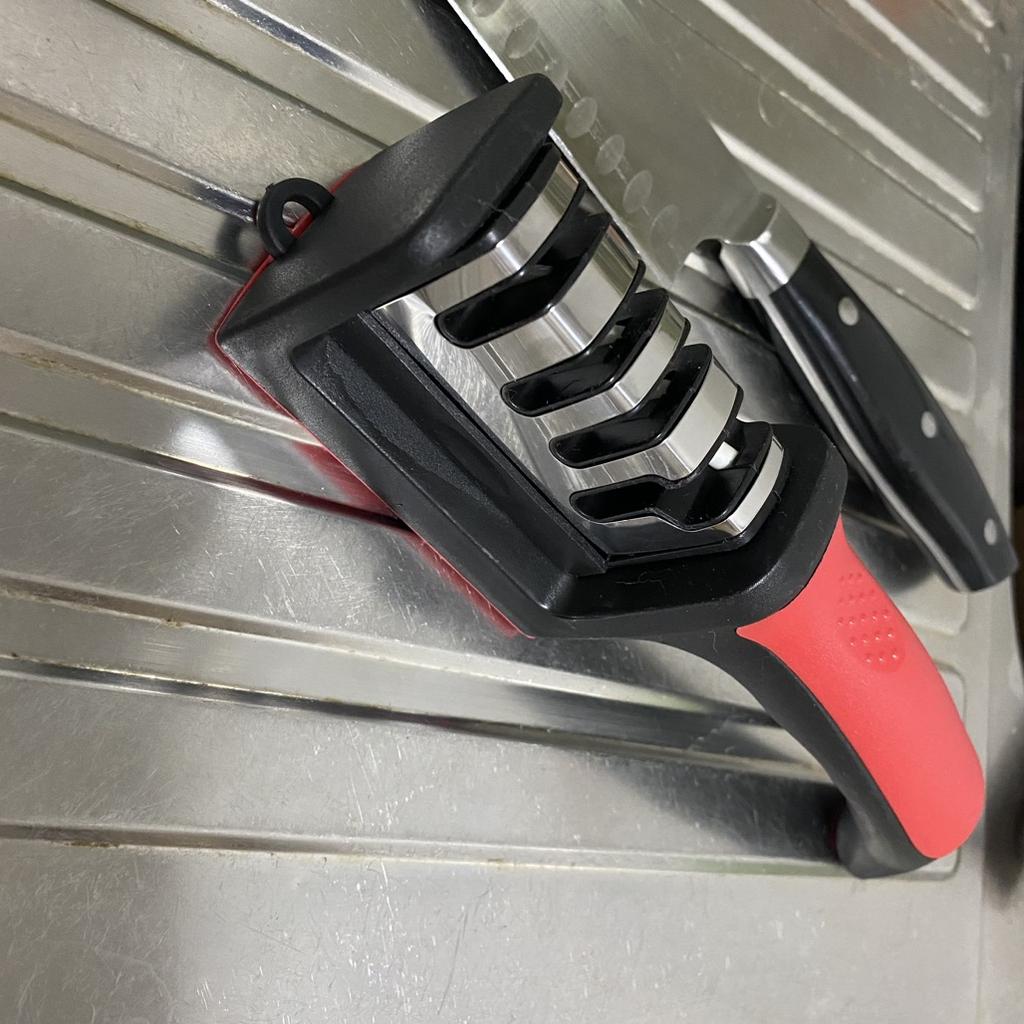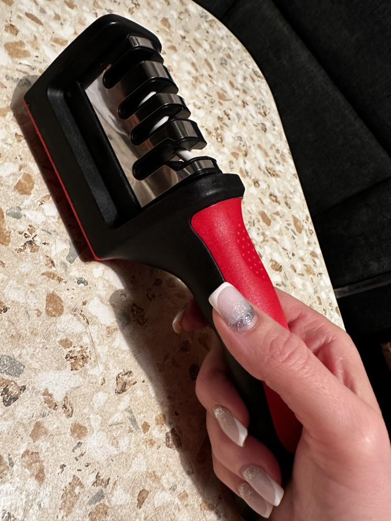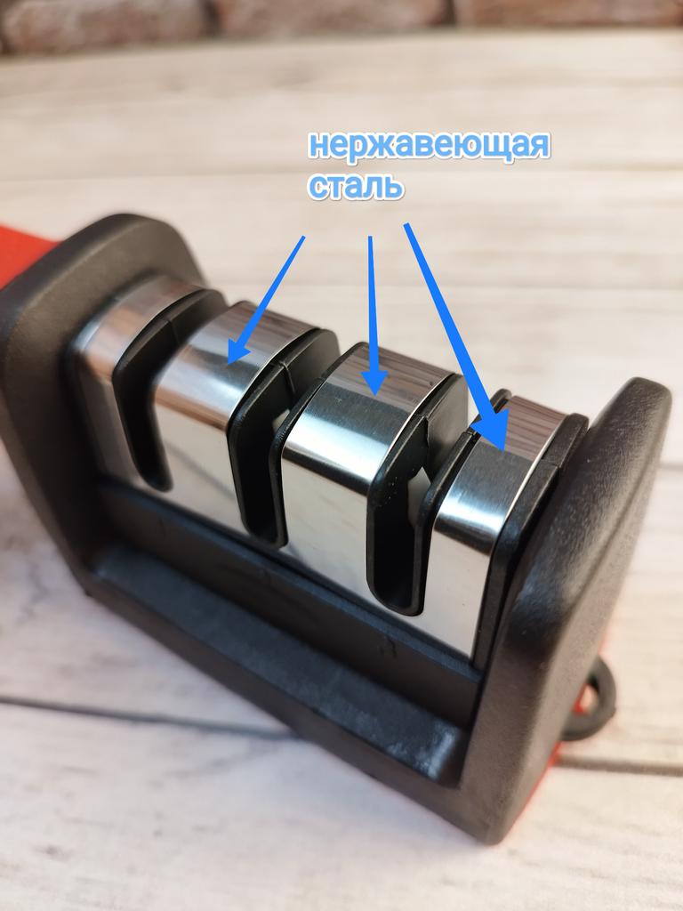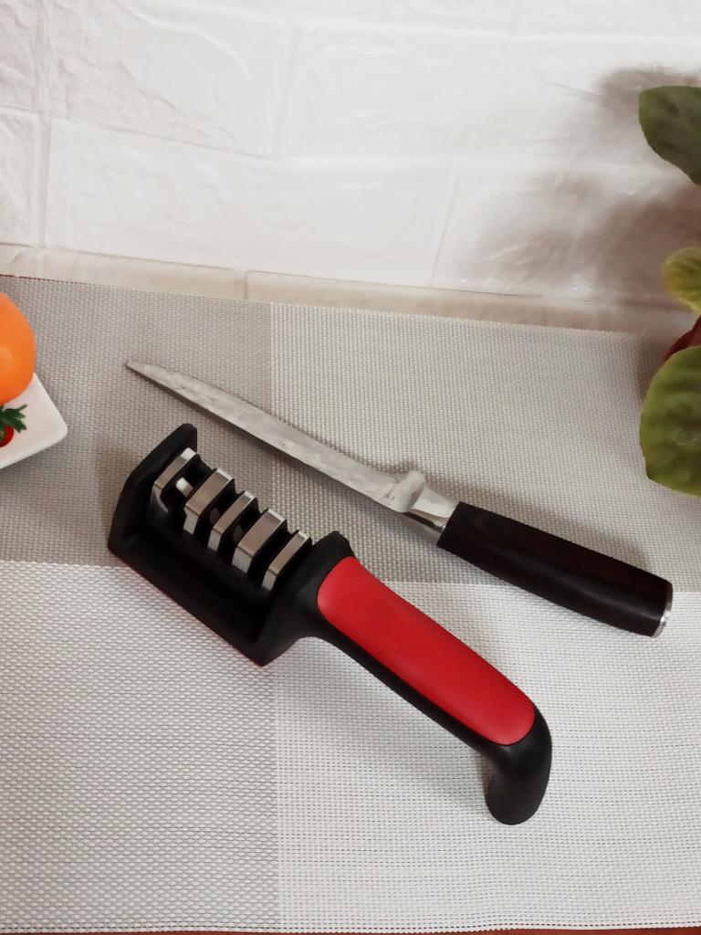 Sharpener for knives and kitchen scissors ! ✈️ The parcel took less than a month to Moldova. ✅Material: plastic body, metal . ✅ 3 reps. for sharpening knives and 1 hole. for sharpening scissors ✅Comfortable handle and silicone bottom to prevent the sharpener from slipping. ✅Excellent quality! ✅I’m happy with the purchase and definitely recommend it for purchase ❤️