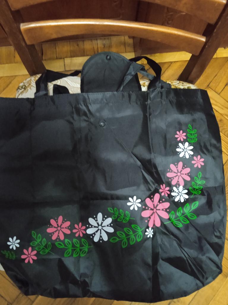 A good bag, you can carefully roll it up and fasten it, put it in your bag, use it as needed. The handle is long, you can carry it on your shoulder, though I had to sew it on tighter, they quickly started to come off. But overall I am happy with the purchase.