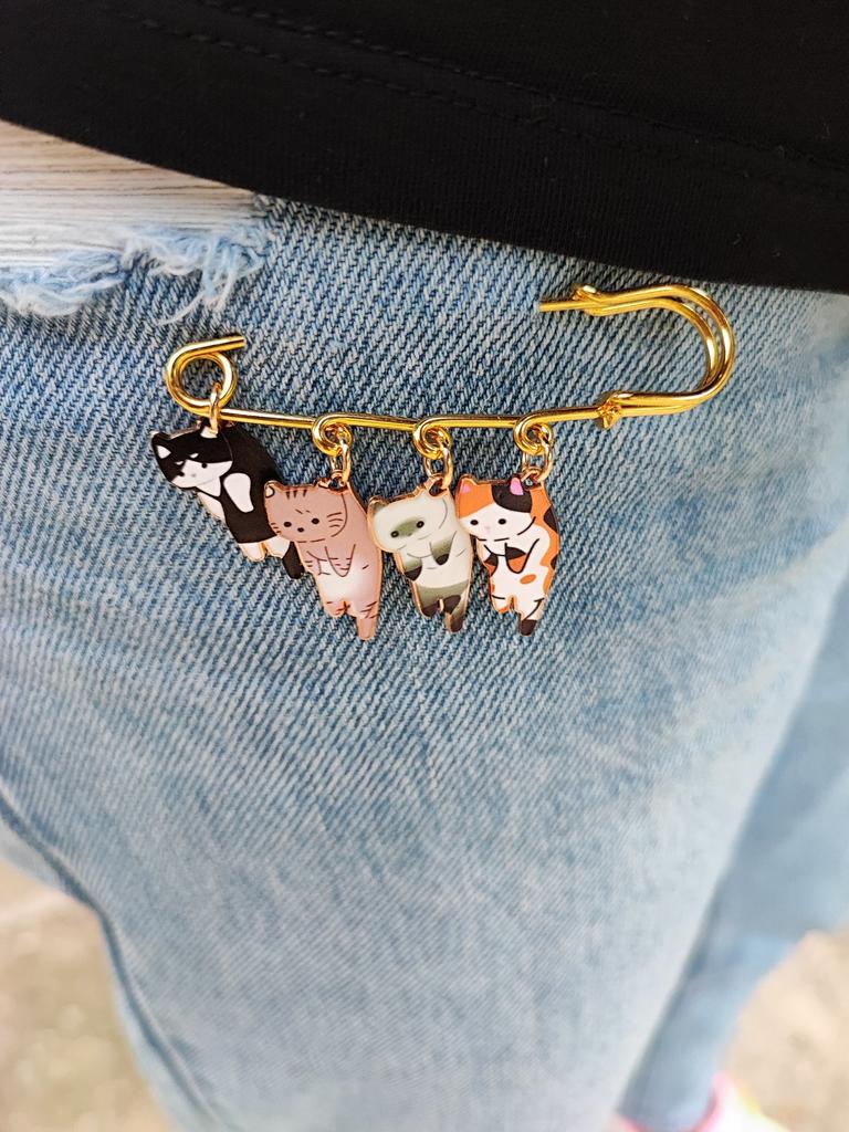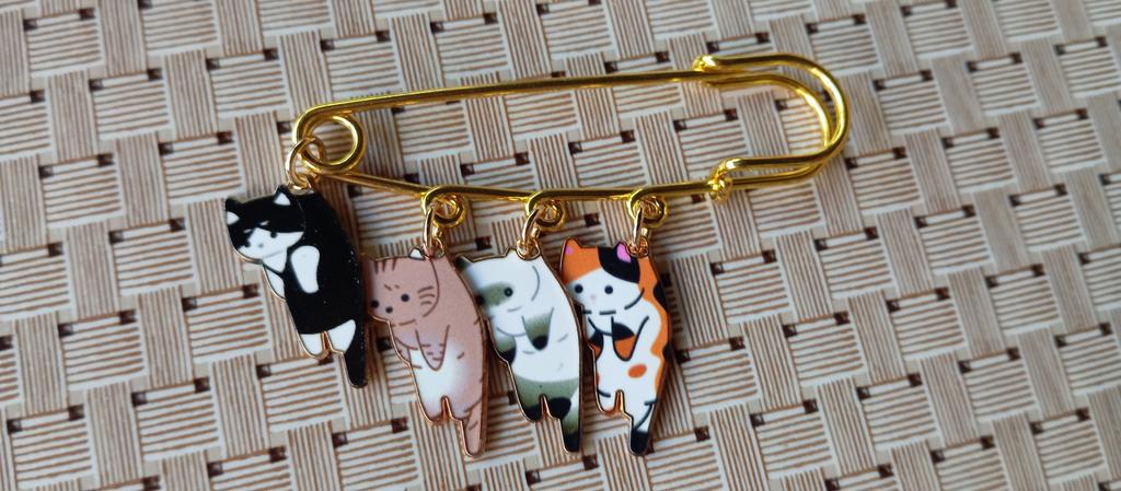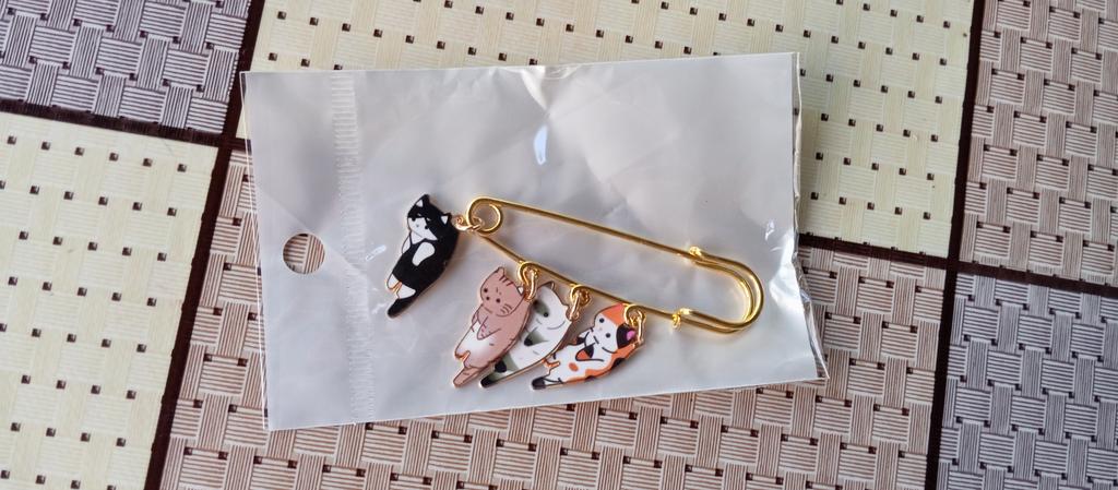 The brooch itself is cute, but the available cats do not match the description specifically on the one that arrived to me. Instead of four different ones - repeats in hangers. But in general approx