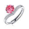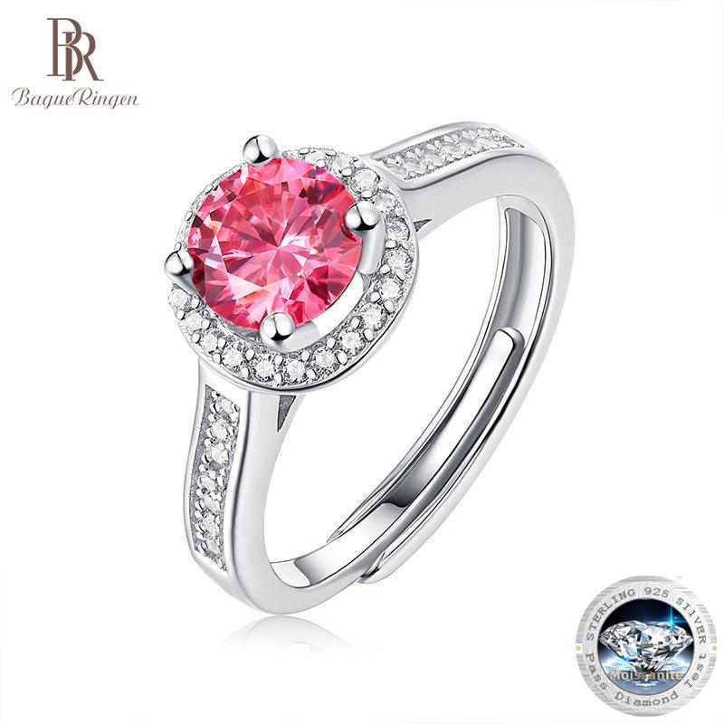 Bague Ringen S925 Silver Set 1ct Moissanite Luxury Round Bag Color Women's Six-prong Pink Adjustable Opening Ring