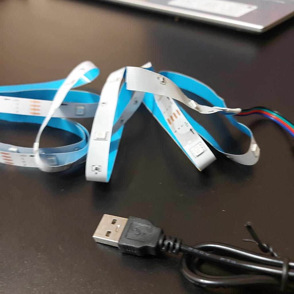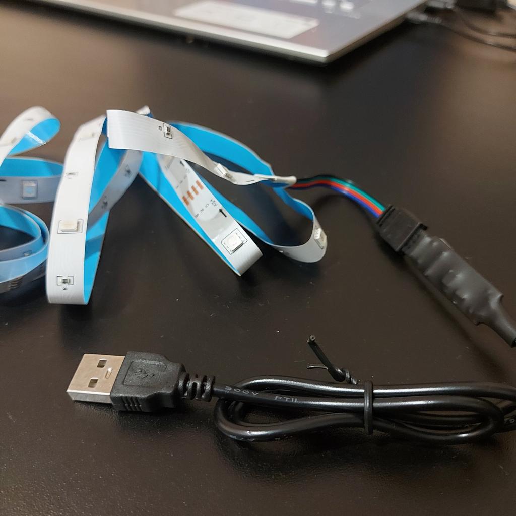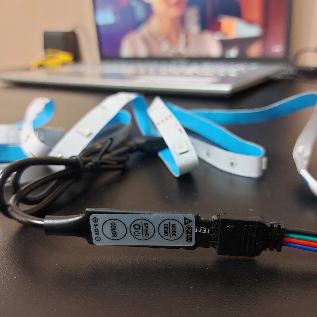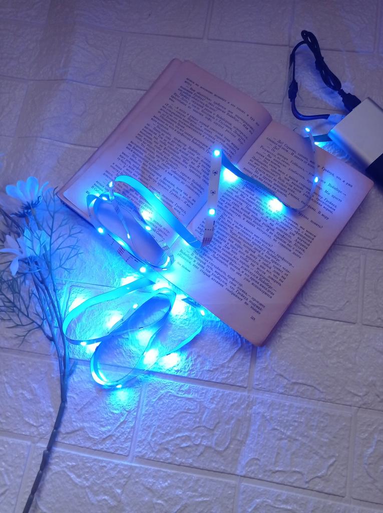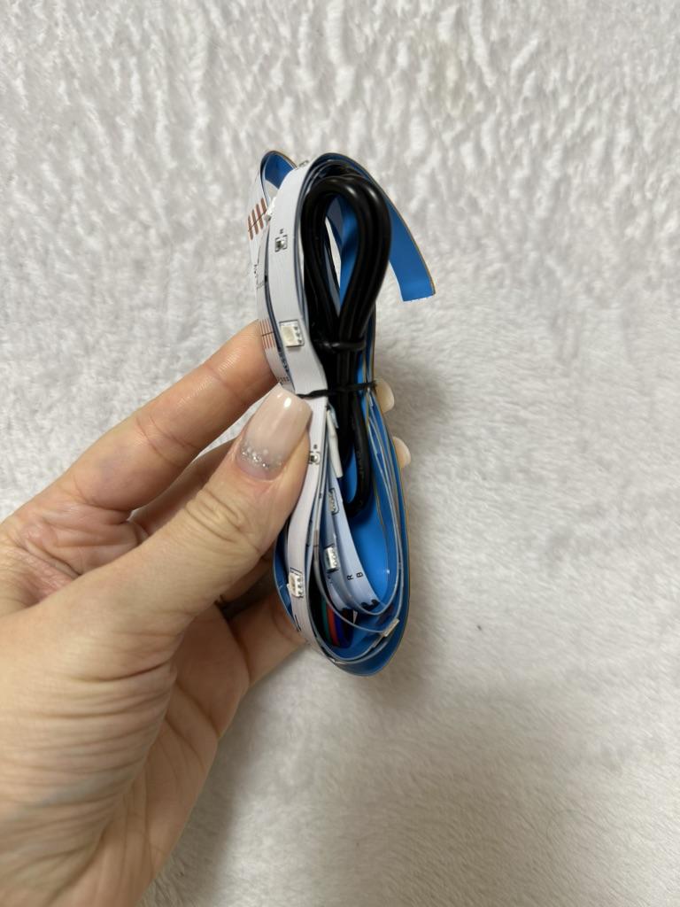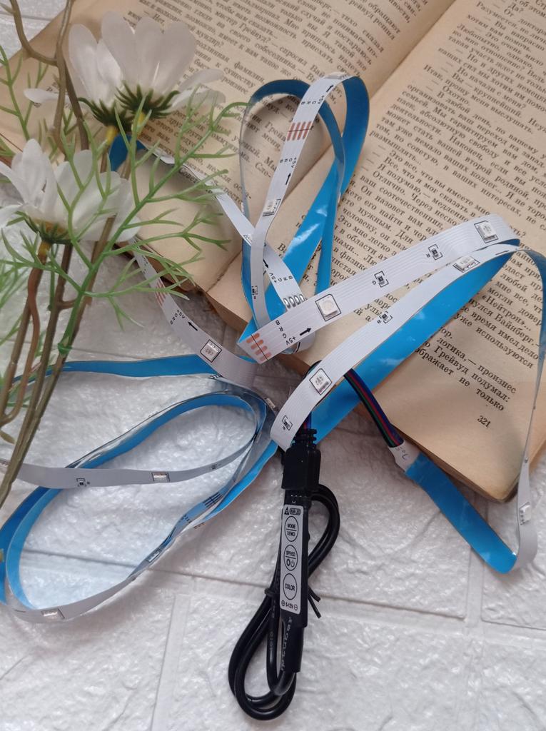 A two-meter LED strip, ordered by my daughter for nursery decor. My tape is called 3 key 2m. It is two meters long, has 24 LEDs, connects to the network via a USB connector, and has control buttons. There are only three buttons, you can change the type of flashing, flashing speed and color. The tape is self-adhesive, it is very convenient to use it for room decoration
