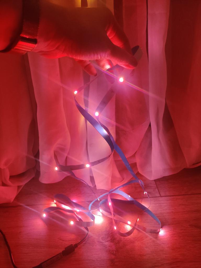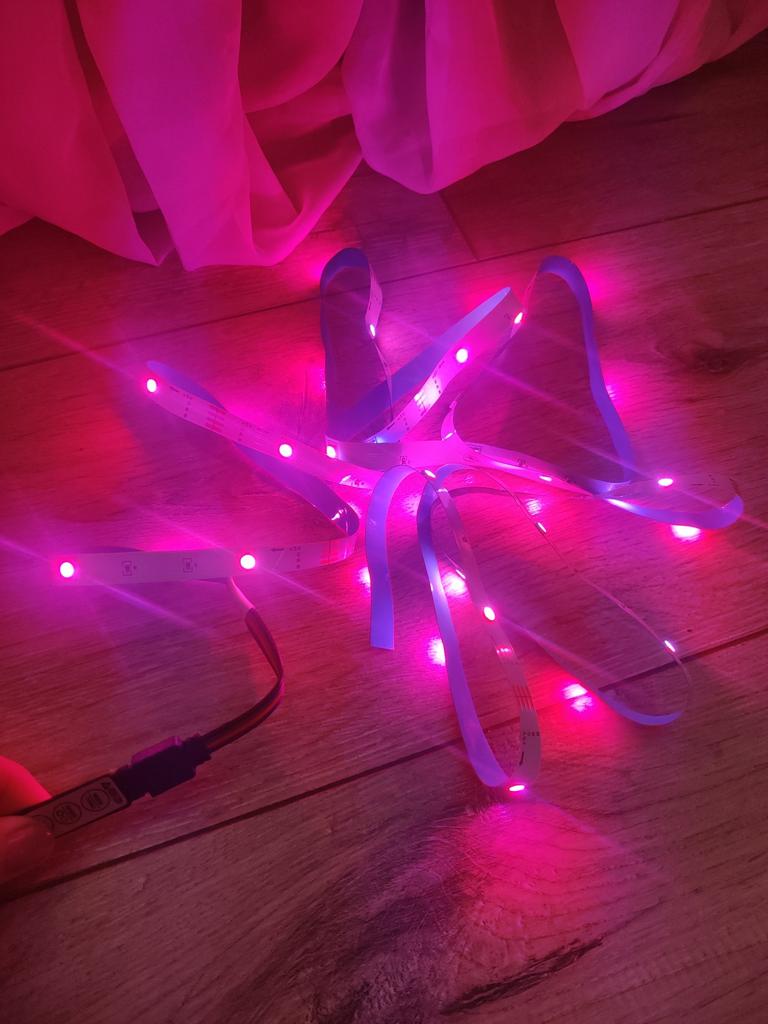 Bomb LED strip💥💥💥 Unrealistically cool! I took the length 2 m, now I’m considering new purchases!!! 🤩🤩🤩 2M for testing)) attached with double-sided tape in the bedroom. And it’s great for illuminating in the kitchen above the countertop, in the nursery, etc.) The button adjusts, like a garland, the blinking speed and color. Cool🙈🤩 Recommend❣️❣️❣️ Small video))