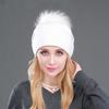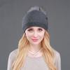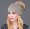 Women Winter Warm Cashmere Wool Knitted Real Fur Pom Pom Ball Beanie Hat