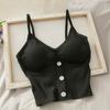 Fashion Ladies V-Neck Knitted Button Strap Vests Sexy Solid Colors Sleeveless Tank Tops Spring and Summer and Autumn Seamless Underwear Camisoles