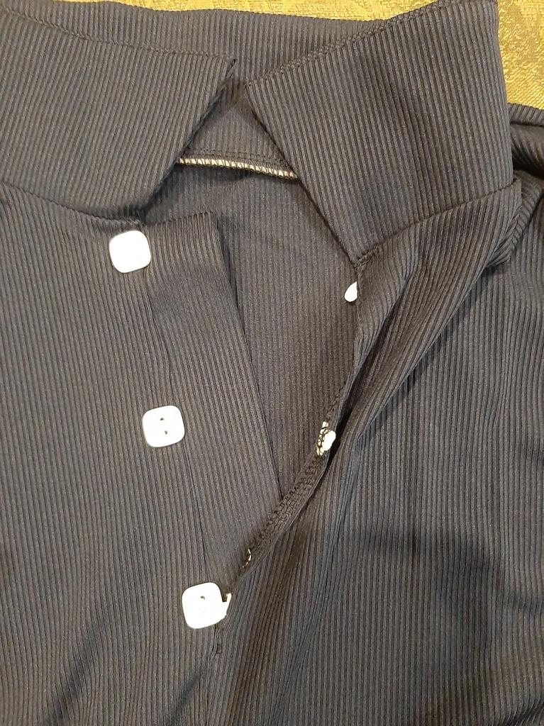 The material is good, but the tailoring... Uneven stitches, threads sticking out everywhere, buttons and eyelets do not match