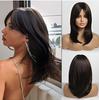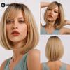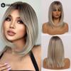 Medium Length Ombre Brown To Blonde Straight Hair Wigs with Bangs Synthetic Wigs for Women Cosplay Heat Resistant Natural Wigs