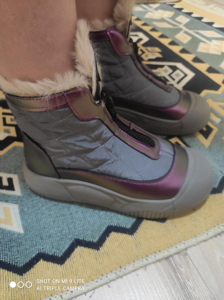 The boots are two sizes too small, that's true, and they are better suited for autumn, when it's damp and wet. They look good on the foot. The foot is comfortable in them.