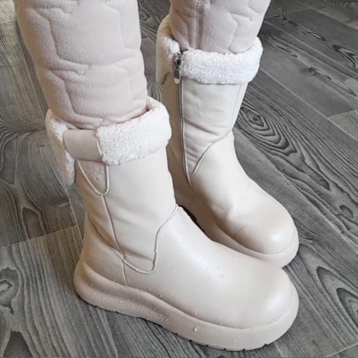 Excellent boots, they fit my size 36 perfectly! Comfortable, soft, beautiful, the sole is high, my feet will be warm and cozy in winter!!! Super! I am 100% satisfied with the purchase!!! I have been wearing these boots for the second winter and I am delighted with my purchase!!! Comfortable, light, soft, my feet are comfortable!!! 1000% satisfied with the purchase!!!