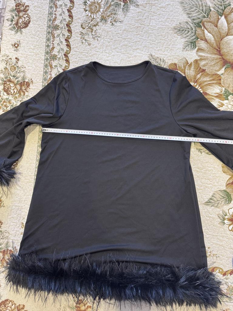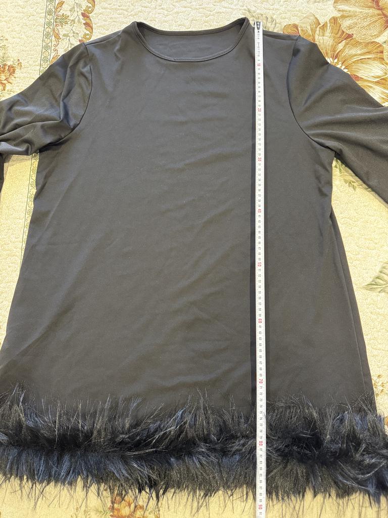 Women Dress Loose Round Neck Decor Solid Fuzzy Faux Fur Color Long Sleeve Pullover H-shaped Above Knee Length
