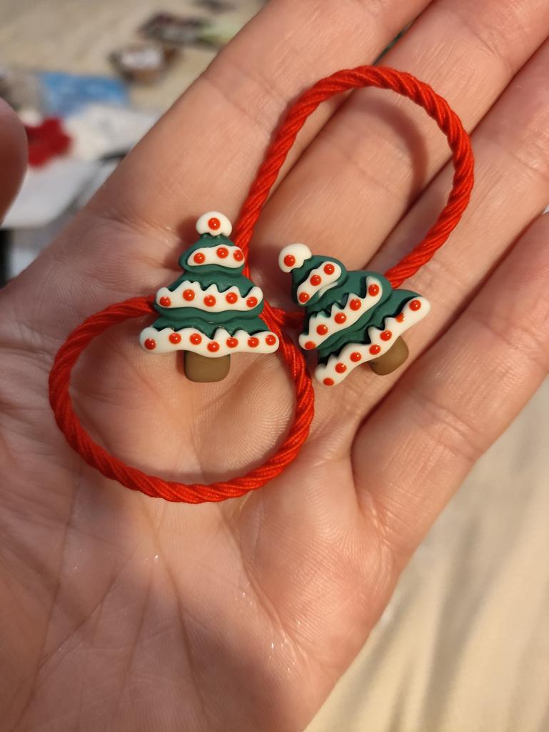 Instead of two rubber bands with a Christmas tree, only one came in the set, unfortunately. Other New Year's kits came with two rubber bands each.