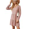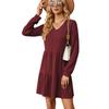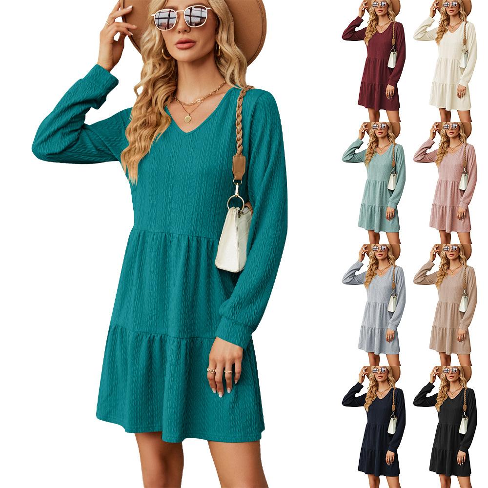Spring and Autumn Women's Dress Solid Color V-Neck Splicing Long Sleeve Loose Dress A-line Dresses