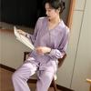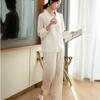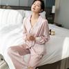 Ice Silk Suit Women French Vintage Elegant Pajama Chic Solid Simple Long-sleeved Trousers Autumn Princess Style Home Wear Two-piece Suit Clothes Chic