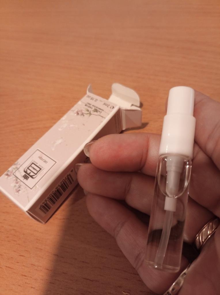The perfume is pleasant, but not long-lasting. It's suitable for a cosmetic bag. I recommend it.