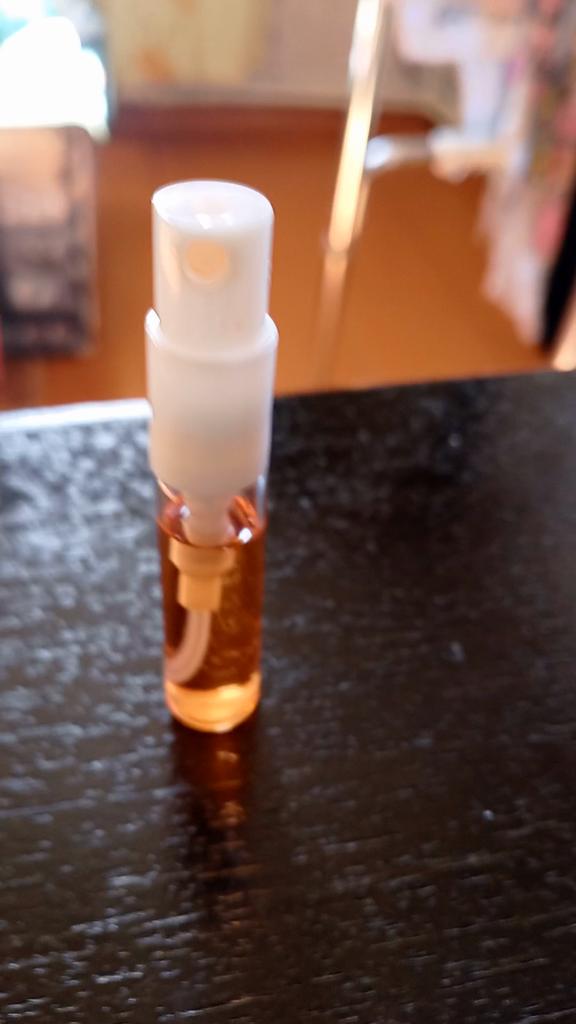 Sweet peach scent, not very persistent, but pleasant. The size of a standard sample, i.e. literally 1.5 ml.