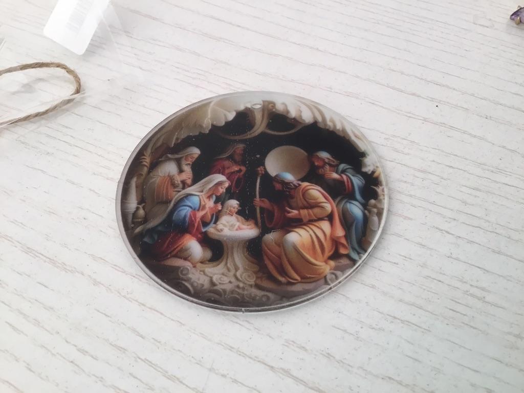 Christmas Nativity Decoration 3D Effect Print Acrylic Reusable Indoor Outdoor Xmas Tree Round Birth of Jesus Savior Hanging Ornament Pendant