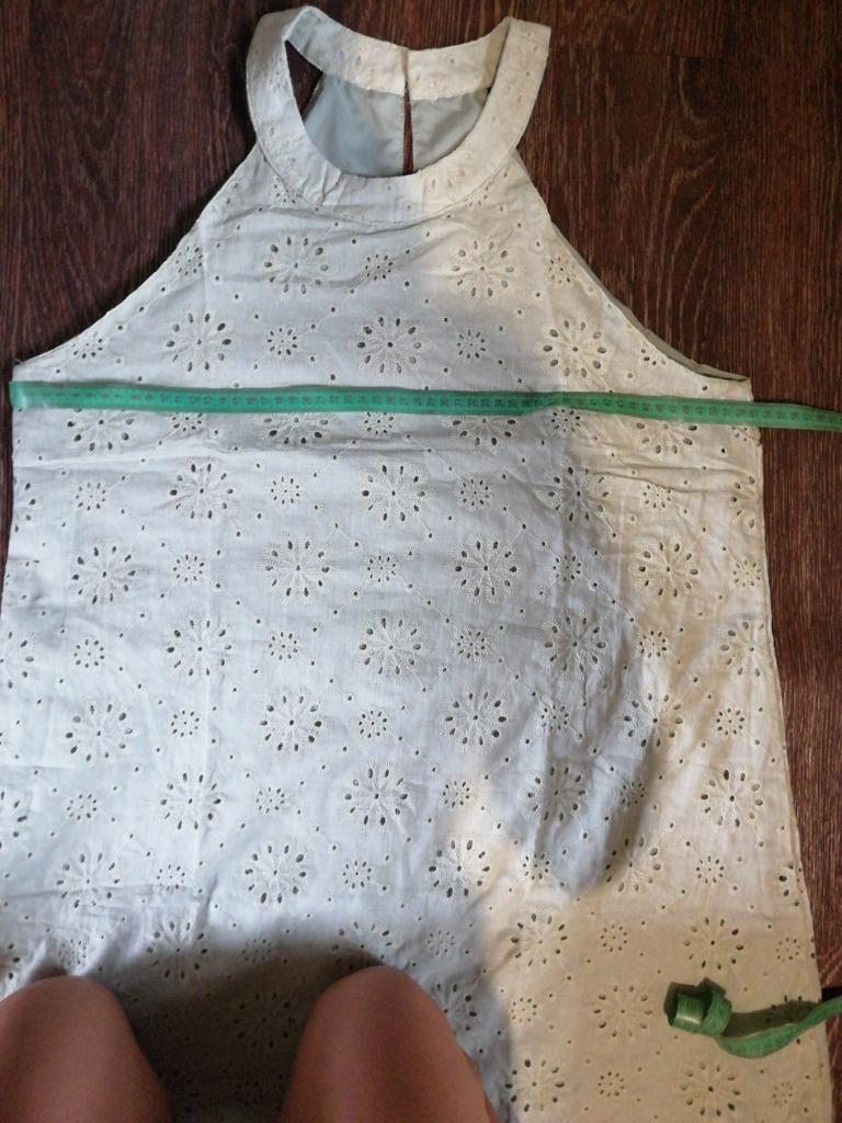 The collar is sewn crookedly. The length of the dress is 92, the chest circumference of the dress is 106. But the material is good