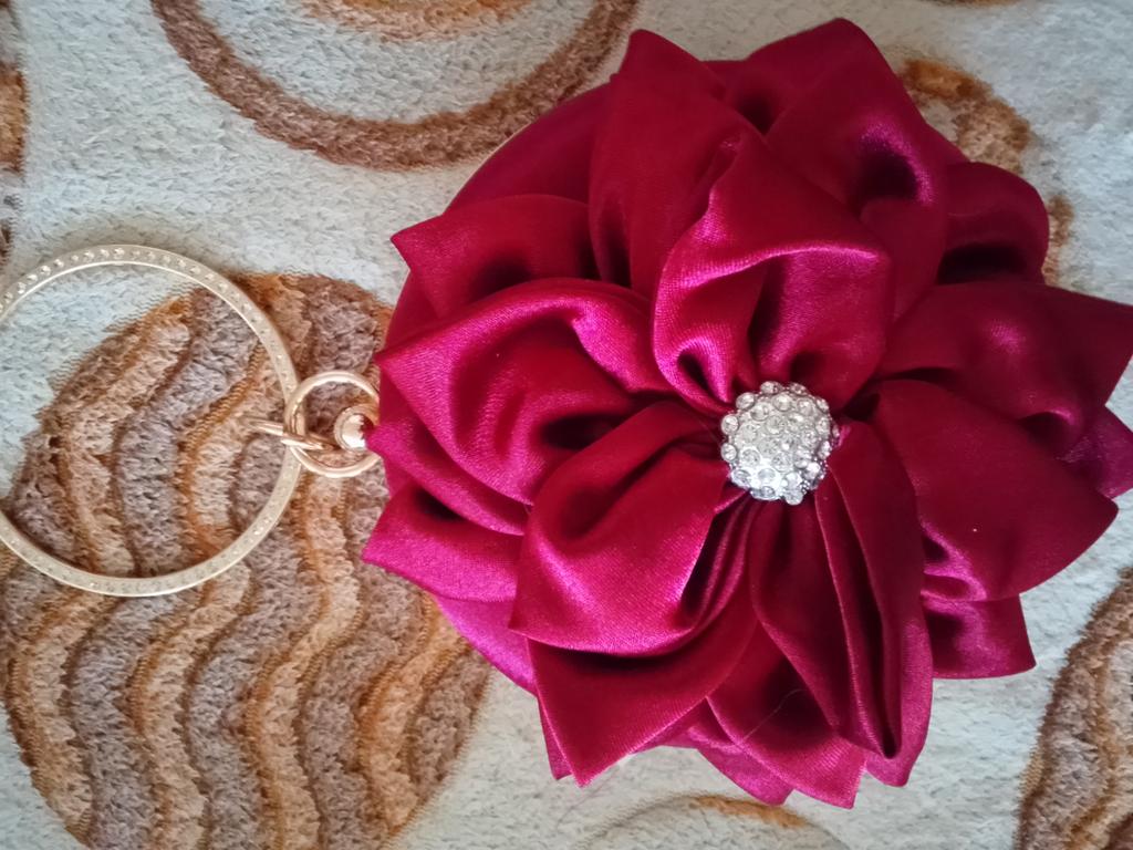 Red Flower Clutch Purse Women Round Evening Bag Crystal Diamond Wedding Silk Handbag Exquisite Chain Shoulder Bags