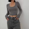 Spring and Autumn Women's Blouse Short Round Neck Fashionable Versatile Casual Long-sleeved Tops