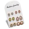 6Pairs Women Water Drop Flower Rhinestone Faux Opal Ear Studs Earrings