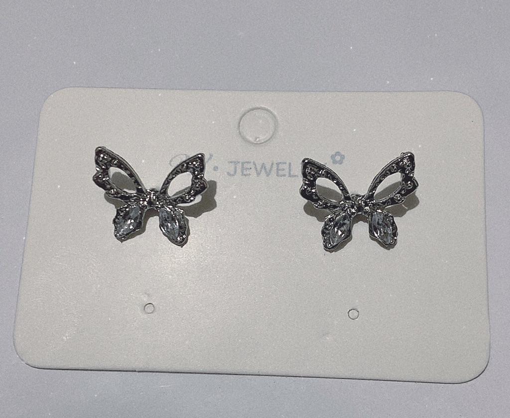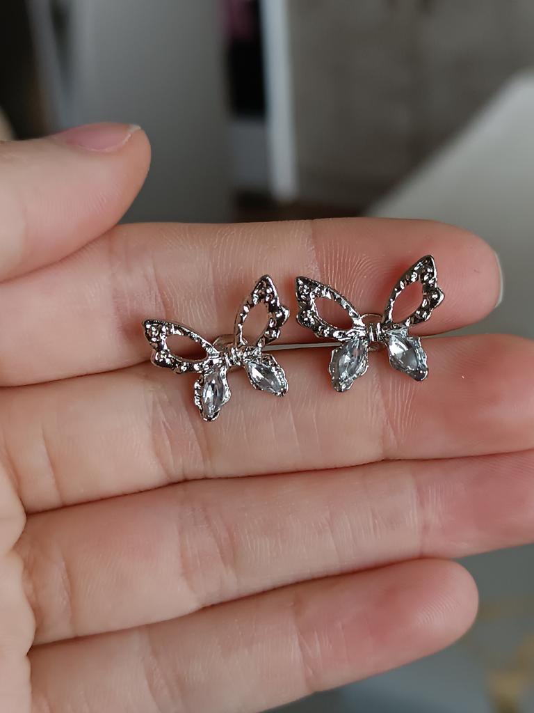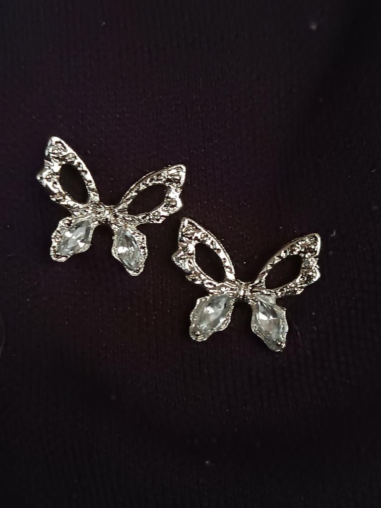 Antiqued Silver Color Hollow Butterfly Stud Earrings for Women Shiny Crystal Dot Bowknot Elegant Girls Wedding Ear Jewelry Brincos