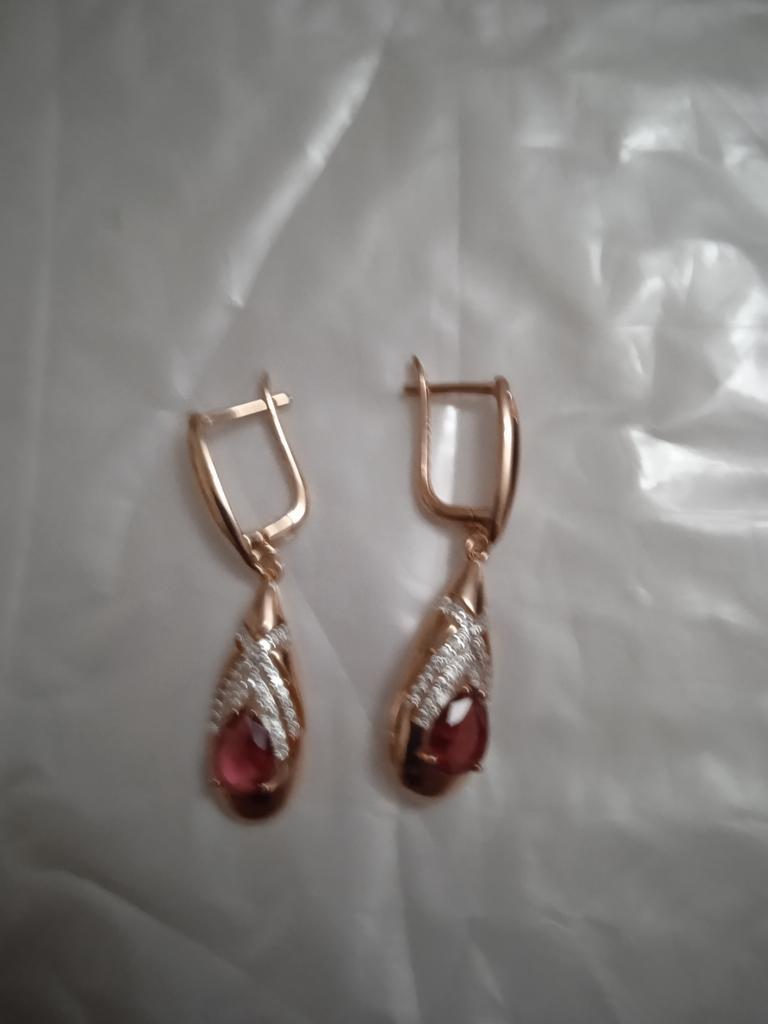 The earrings are super, very cool, they look stylish, like gold, the stones are crimson, like rubies, I recommend