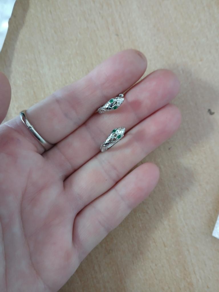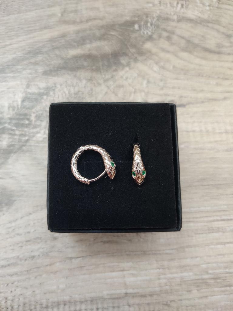 Beautiful stainless steel miniature earrings in the shape of snakes with green crystals as their eyes.Very light and cute ,perfect to for girls and women,Came in 30 days to Ireland.Happy Shopping!