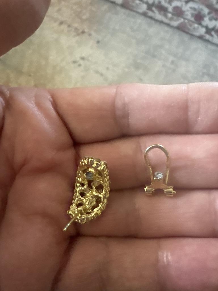 They sit very well on the earlobes, sparkle, the size is wonderful, the jewelry is excellent. The stones are glued in, so be careful. If your earlobes are thin, they will still "sit" well, thanks to the hamochka.