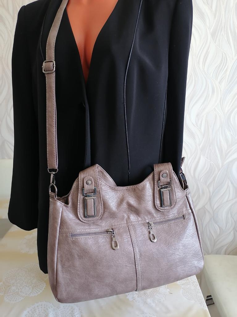 The bag is not bad, therefore 5 stars. But I am not particularly delighted. I expected that it would look better somehow. The outer pockets are too small. I do not know what to put there. There are 3 compartments inside. Or rather, two are separated by a divider. In general, it is not bad. I took the khaki color, but it is somehow grayish. It looks too simple. Maybe black would be better. I am not sure that I will use it. I don’t really like it.