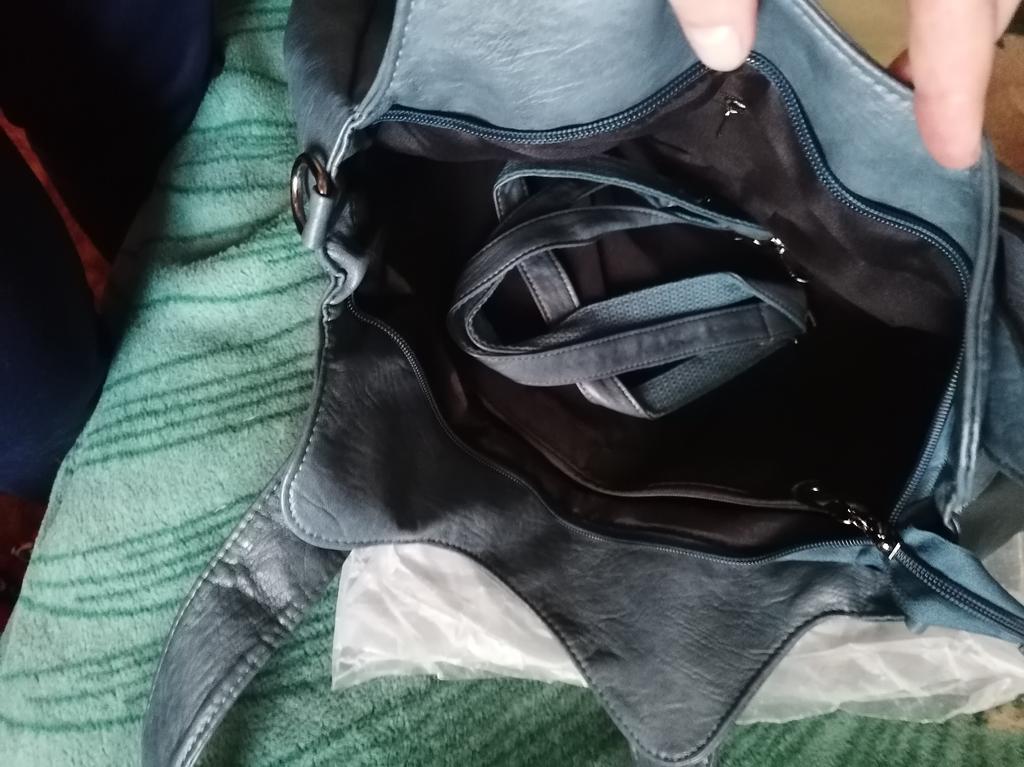 Excellent bag. Inside there are two sections - each with a pocket (one of them (pocket) with a zipper). Double handles, on a jacket, can be worn freely on the shoulder.