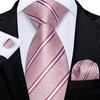Dibangu Red Blue Gold Gray Mens Silk Stripped Woven Tie Necktie Hanky Cufflinks