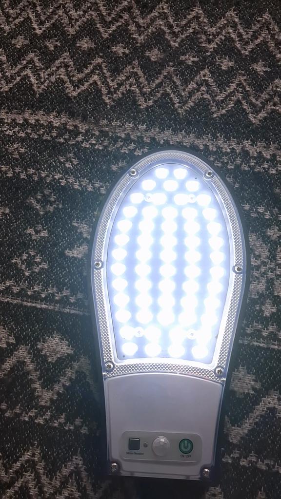 Surprised by its good operation and lighting, installation very easy. Its luminosity was correct to illuminate the entrance of my garage, hold out all night with the soft intensity. I have to mention the battery life, it has two built-in 18650 batteries and lasts twice as long as my old solar light. The old one was split type and had a 5-meter cable, which was not very convenient to use. This all-in-one solar panel is just right to use, without too much complicated design. The polycrystalline silicon solar panels automatically charge quickly during the day and light up automatically after dark.Rugged ABS material, resistant to low temperatures, heat, and water. And most importantly, you don't have to pay the electricity bill. What a great shopping experience.