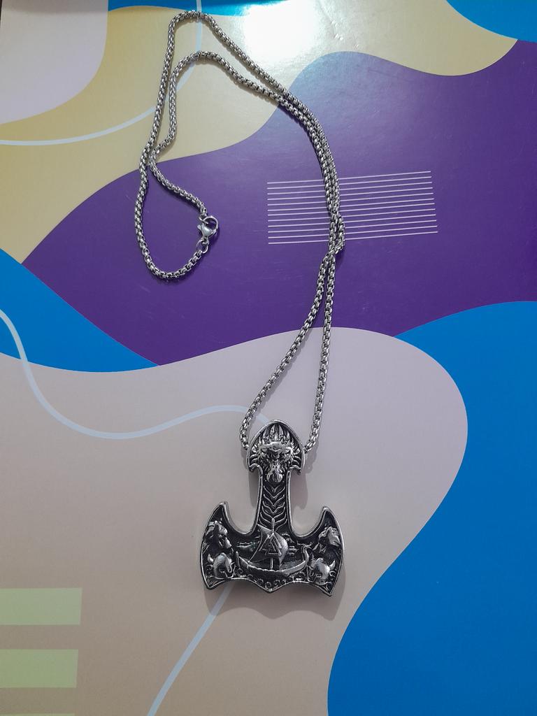 Vintage Viking Thor Hammer Pendant Men's Necklace Viking Ship Necklace Amulet Jewelry